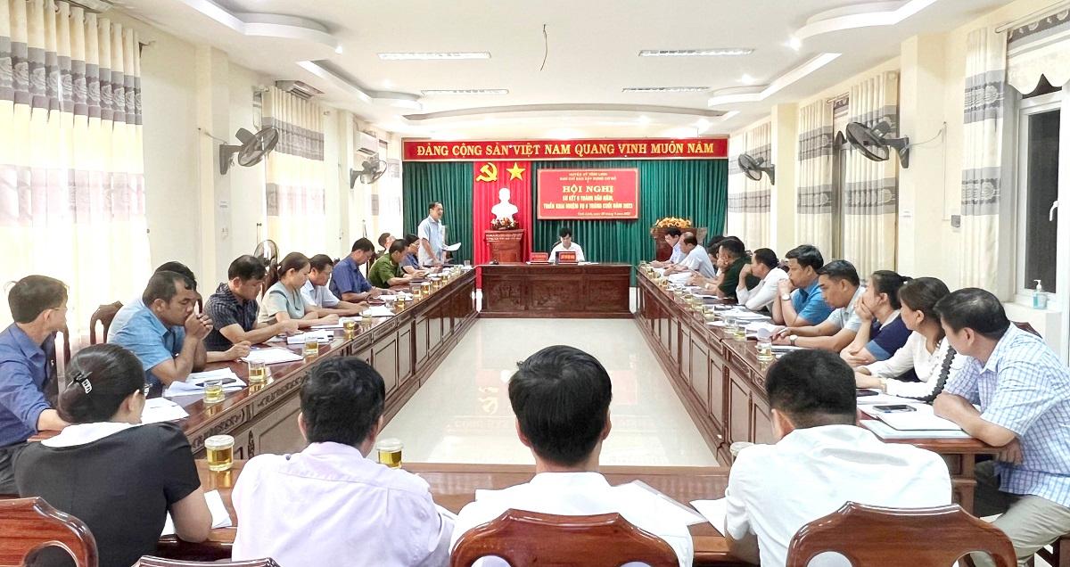 Tại hội nghị, Ban Chỉ đạo XDCS huyện triển khai nhiệm vụ 6 tháng cuối năm 2023, trong đó xác định tập trung vào những giải pháp trọng tâm sau: quán triệt sâu rộng Chỉ thị số 36/2005/TTg của Thủ tướng Chính phủ “về tiếp tục chỉ đạo XDCS vững mạnh toàn diện để đáp ứng yêu cầu nhiệm vụ quốc phòng - an ninh trong tình hình mới”. Tăng cường vai trò của các lực lượng, tạo thành sức mạnh tổng hợp đối với công tác quốc phòng - an ninh. Mở rộng, phát huy quyền làm chủ của Nhân dân đi đôi với giữ gìn kỷ cương, pháp luật của Nhà nước. Đẩy mạnh phong trào “Toàn dân đoàn kết xây dựng NTM, đô thị văn minh”, “Toàn dân bảo vệ an ninh Tổ quốc”. Nâng cao năng lực, nghiệp vụ chuyên môn cho đội ngũ cán bộ công chức xã, thị trấn và các khu phố, thôn, bản, góp phần giữ vững ổn định tình hình trên địa bàn...