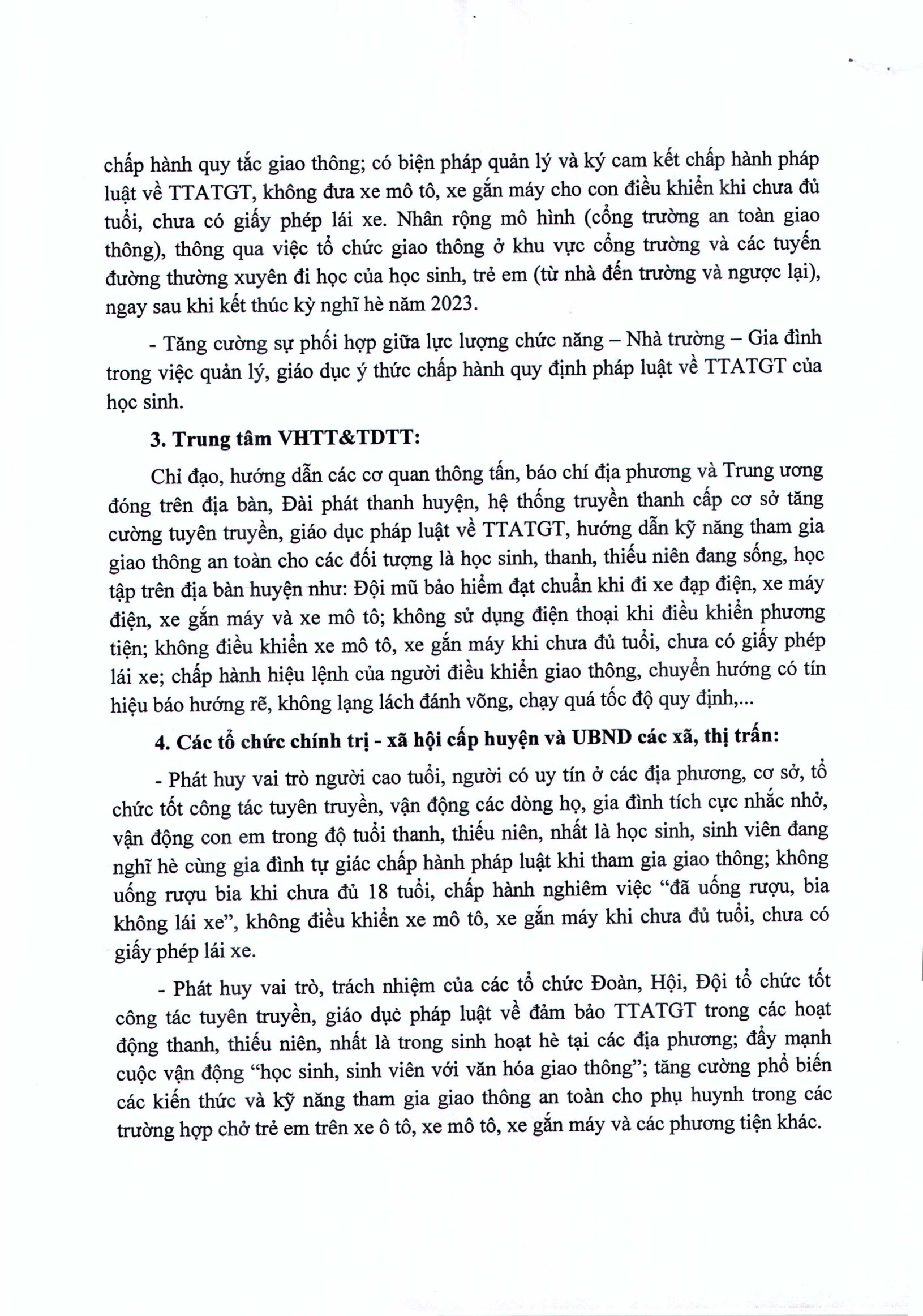 Ngày 8/8/2023, Ban ATGT huyện Vĩnh Linh có văn bản chỉ đạo các ban ngành, đơn vị, địa phương về việc tăng cường đảm bảo ATGT cho học sinh, thanh thiếu niên.