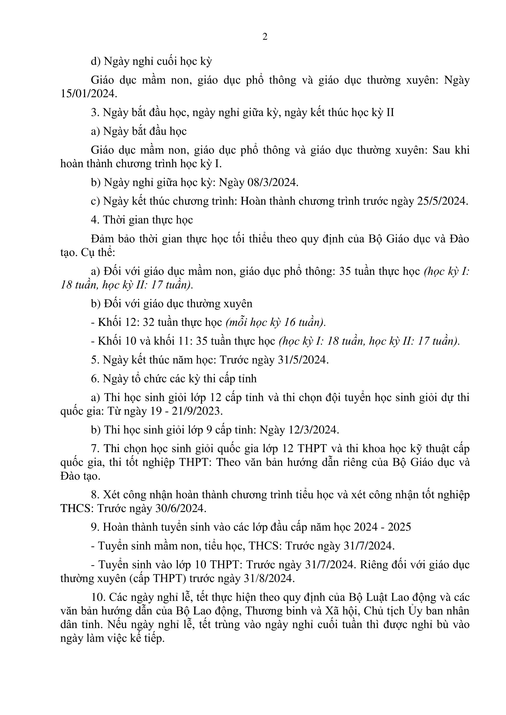 Khung kế hoạch thời gian năm học 2023- 2024
