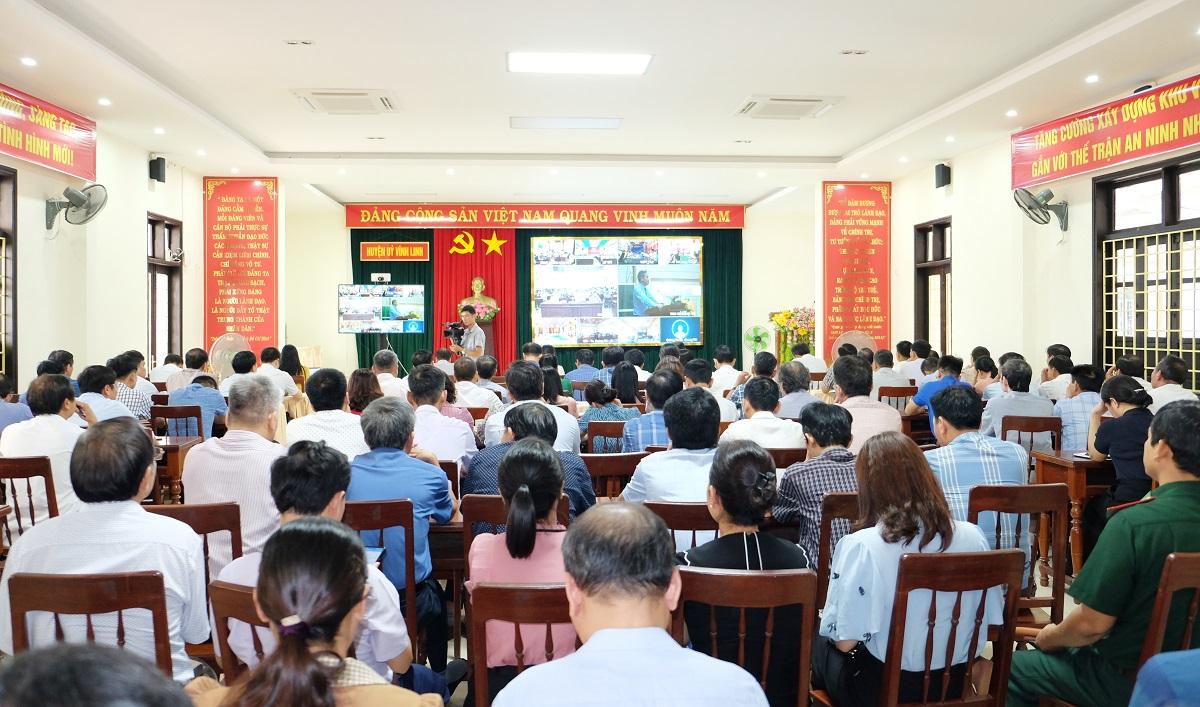Hội nghị được tổ chức trực tuyến với 93 điểm cầu trong toàn tỉnh. Tại điểm cầu huyện Vĩnh Linh có sự tham gia đầy đủ của các đồng chí Ủy viên BCH Đảng bộ huyện khóa XIX; Trưởng, Phó các phòng ban, ngành, đoàn thể; các Báo cáo viên huyện ủy; Bí thư và Chủ tịch UBND các xã thị trấn; giảng viên Trung tâm Chính trị huyện, Bí thư Chi bộ, Hiệu trưởng các trường học và cán bộ, đảng viên cơ quan Huyện ủy.
