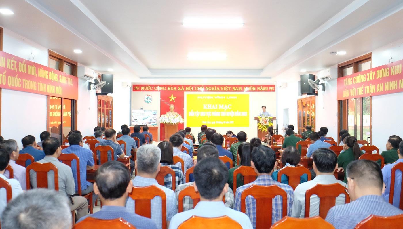 Ngày 10/10, huyện Vĩnh Linh tổ chức khai mạc Diễn tập khu vực phòng thủ (KVPT) năm 2023. Tham dự khai mạc có các đồng chí: Đại tá Lê Huy Nghĩa- Phó Chủ huy trưởng, Tham mưu trưởng Bộ CHQS tỉnh Thừa Thiên Huế, Tổ trưởng Tổ đạo diễn diễn tập; Đại tá Hà Văn Ái- Phó Chính ủy Bộ CHQS tỉnh Thừa Thiên Huế.