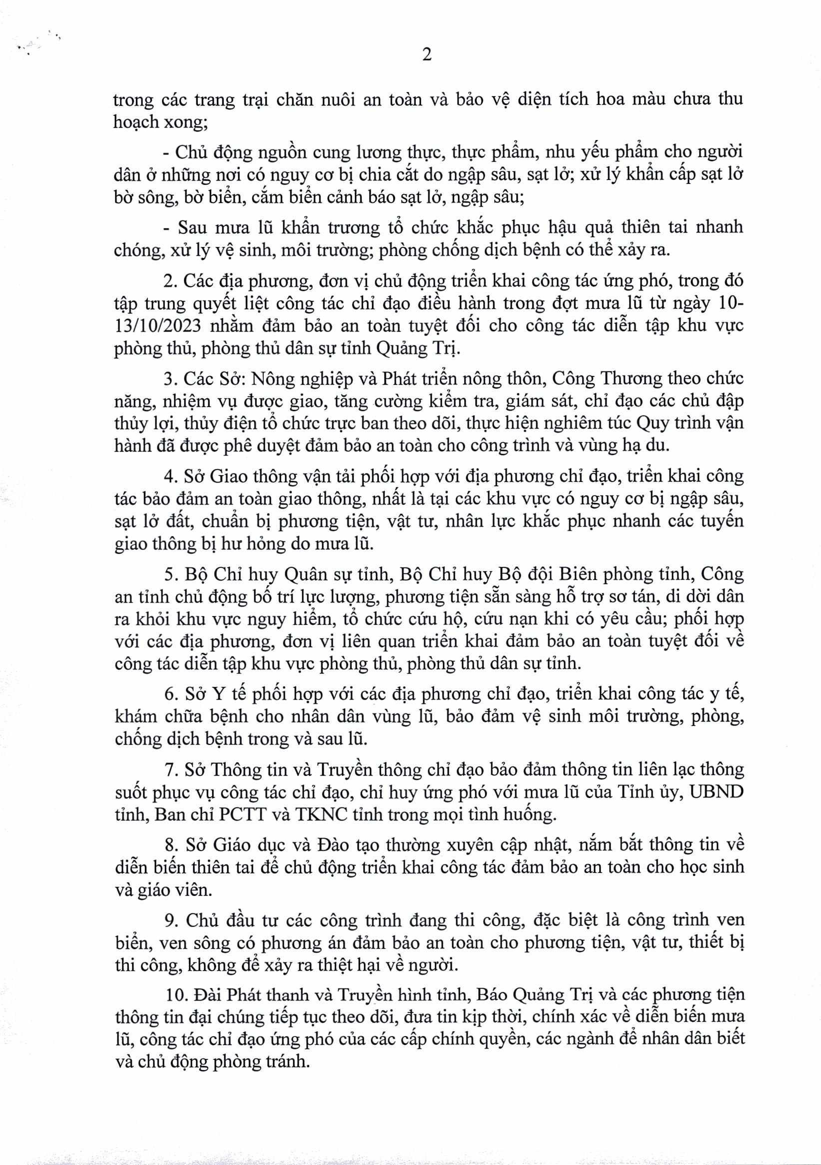 Ngày 10/10/2023, Chủ tịch UBND tỉnh Quảng Trị có Công điện khẩn về việc tập trung ứng phó với tình hình mưa lũ.