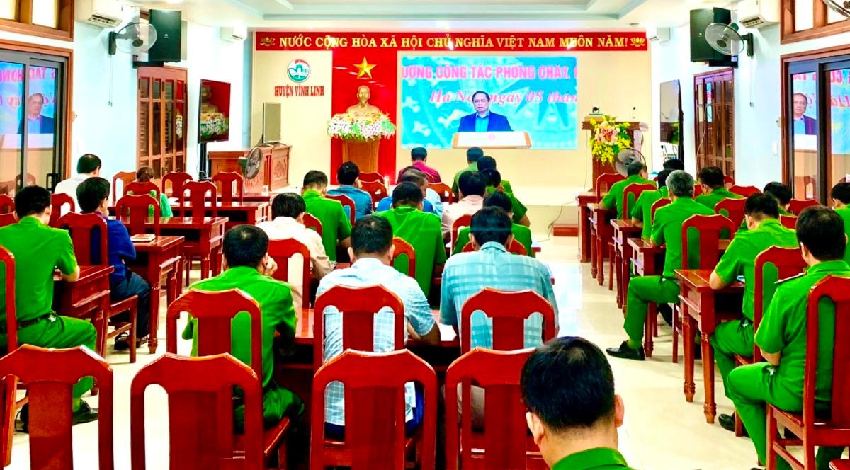 Ngày 5/11/2023, Thủ tướng Chính phủ Phạm Minh Chính chủ trì Hội nghị trực tuyến toàn quốc về tăng cường công tác PCCC, đánh giá kết quả 10 tháng thực hiện Chỉ thị 01/CT-TTg và các Công diện của Thủ tướng Chính phủ về công tác PCCC. Hội nghị được tổ chức trực tuyến tại điểm cầu Trụ sở Chính phủ kết nối với 63 điểm cầu tỉnh, thành phố và UBND các huyện, thị trong cả nước. Tại điểm cầu huyện Vĩnh Linh có sự tham gia đầy đủ của các phòng ban, đơn vị, UBND các xã và thị trấn trong toàn huyện.