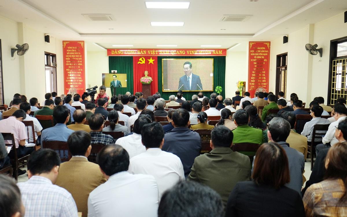 Tại điểm cầu huyện Vĩnh Linh có sự tham gia của đồng chí Trần Nhật Quang - Bí thư Huyện ủy, Nguyễn Thị Hương- Phó Bí thư Huyện ủy, Thái Văn Thành- Chủ tịch UBND huyện.