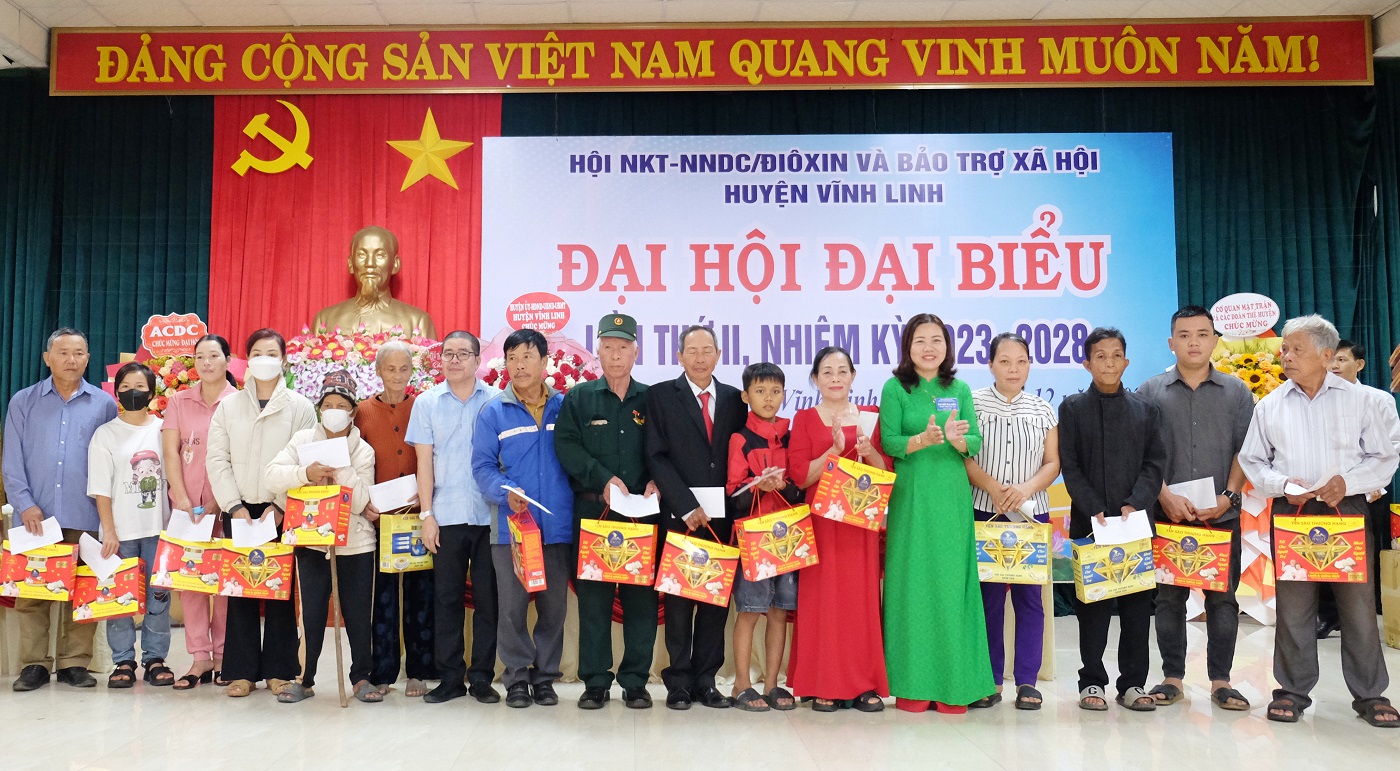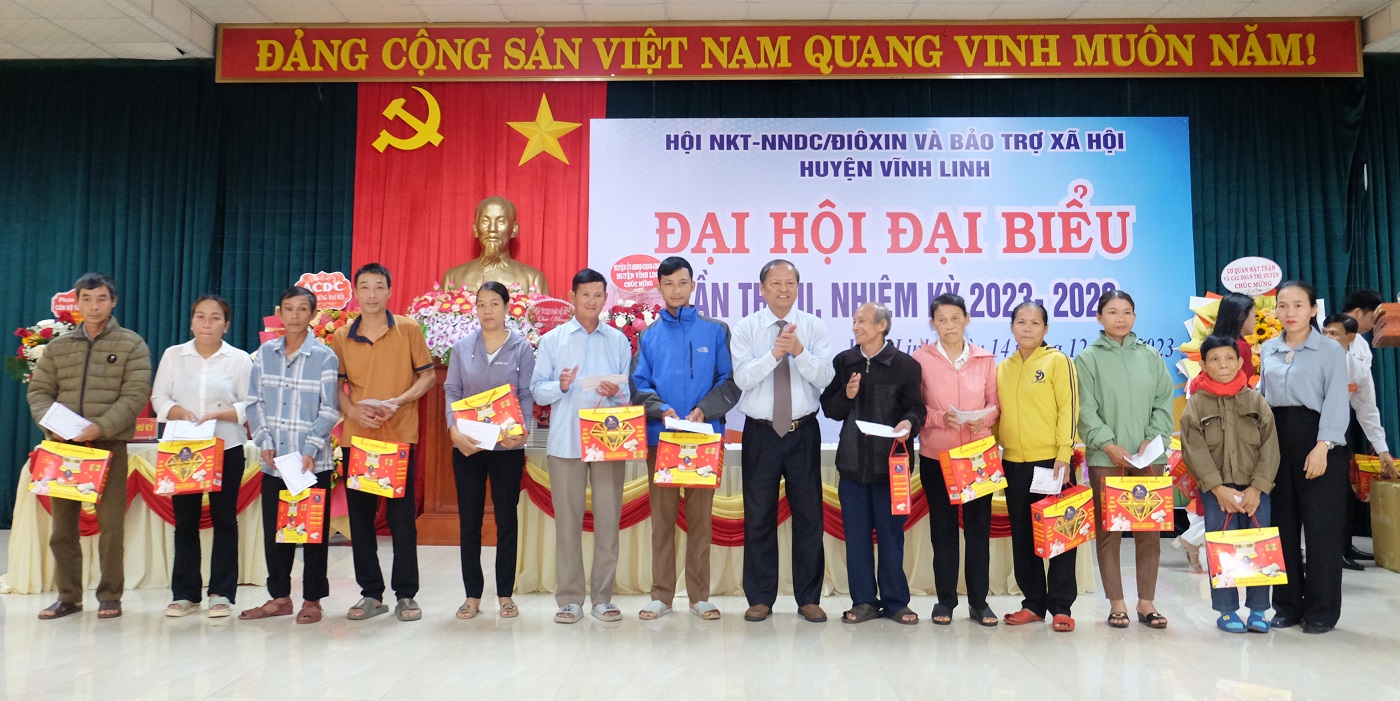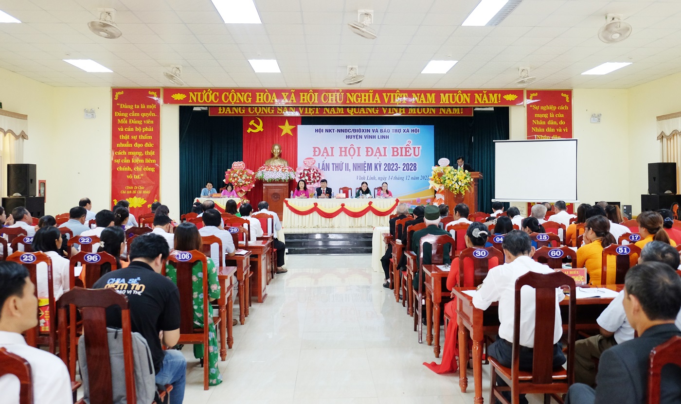 Ngày 14/12/2023, huyện Vĩnh Linh tổ chức Đại hội đại biểu Hội Người khuyết tật, Nạn nhân da cam/điôxin và Bảo trợ xã hội lần thứ 2, nhiệm kỳ 2023- 2028. Đến dự có các đồng chí: Thái Vĩnh Liệu- Chủ tịch Hội Người khuyết tật, Nạn nhân da cam, Bảo trợ NKT và Bảo vệ quyền trẻ em tỉnh; Nguyễn Thị Hương- Phó Bí thư Thường trực Huyện ủy, Chủ tịch HĐND huyện; Vũ Văn Phong- Chủ tịch UBMT huyện; Nguyễn Thiên Tùng- Phó Chủ tịch UBND huyện.