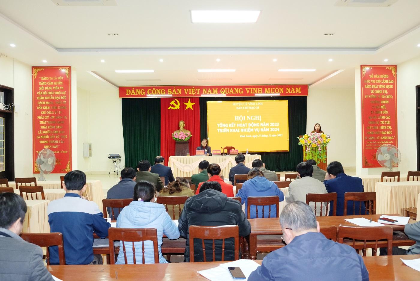Ngày 27/12/2023, Ban Chỉ đạo 35 huyện Vĩnh Linh đã tổ chức tổng kết công tác bảo vệ nền tảng tư tưởng của Đảng, đấu tranh phản bác các quan điểm sai trái, thù địch năm 2023 theo tinh thần Nghị quyết 35 của Bộ Chính trị và triển khai nhiệm vụ năm 2024. Bí thư Huyện ủy Trần Nhật Quang đã đến dự.