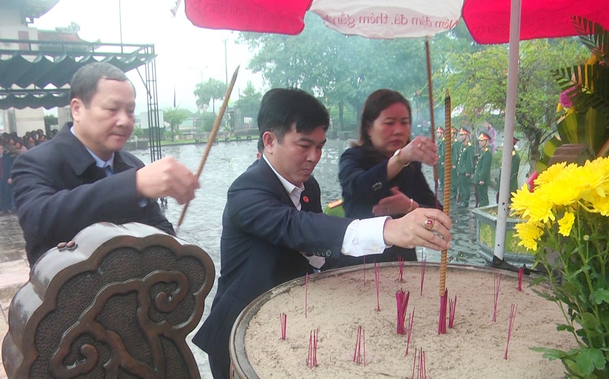 Trong không khí trang nghiêm, thành kính, các đồng chí trong Ban Thường vụ Huyện uỷ, Thường trực HĐND; lãnh đạo UBND, Thường trực UBMTTQVN huyện Vĩnh Linh; đại diện Thường trực Đảng ủy, HĐND, UBND, UBMT thị trấn Hồ Xá đã làm lễ dâng hoa, dâng hương trước anh linh của hơn 5.600 anh hùng liệt sỹ của 41 tỉnh, thành trong cả nước đang nằm yên nghỉ tại nghĩa trang.