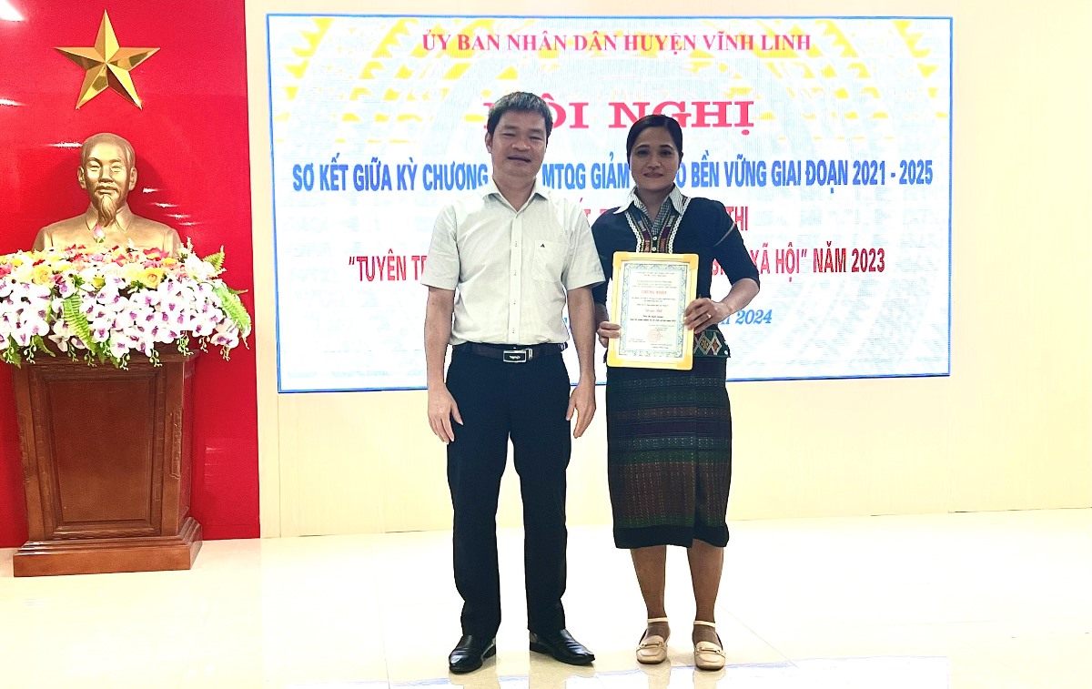 Ngày 12/1/2024, huyện Vĩnh Linh tổ chức hội nghị sơ kết giữa kỳ Chương trình MTQG giảm nghèo bền vững giai đoạn 2021- 2025 và tổng kết, trao giải cuộc thi “Tuyên truyền công tác giảm nghèo và an sinh xã hội” năm 2023.