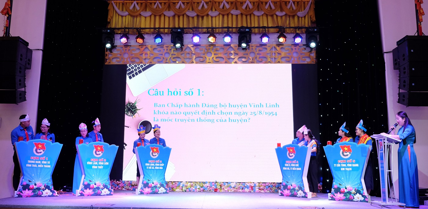Phần thi kiến thức các thí sinh đã thể hiện sự hiểu biết của tuổi trẻ thông qua việc trả lời các bộ câu hỏi có nội dung về lịch sử Đảng, Bác Hồ, truyền thống của quê hương Vĩnh Linh và các kiến thức về Đoàn- Hội- Đội.