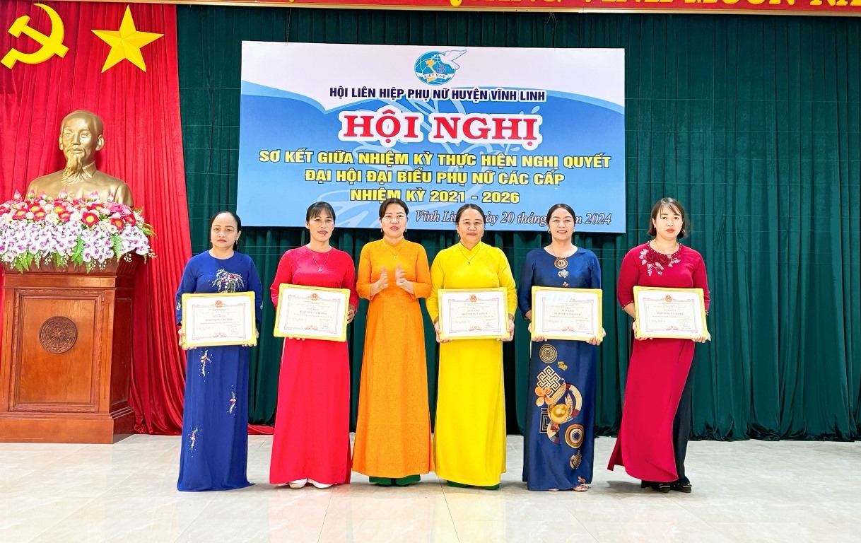 Ngày 20/6/2024, Hội LHPN huyện Vĩnh Linh tổ chức hội nghị sơ kết giữa nhiệm kỳ thực hiện Nghị quyết Đại hội đại biểu phụ nữ các cấp nhiệm kỳ 2021- 2026. Tham dự có các đồng chí Nguyễn Thị Quế Phượng- Phó Chủ tịch Hội LHPN tỉnh, Trần Nhật Quang- Bí thư Huyện uỷ, Nguyễn Thị Hương- Phó Bí thư Thường trực Huyện uỷ, Chủ tịch HĐND huyện.