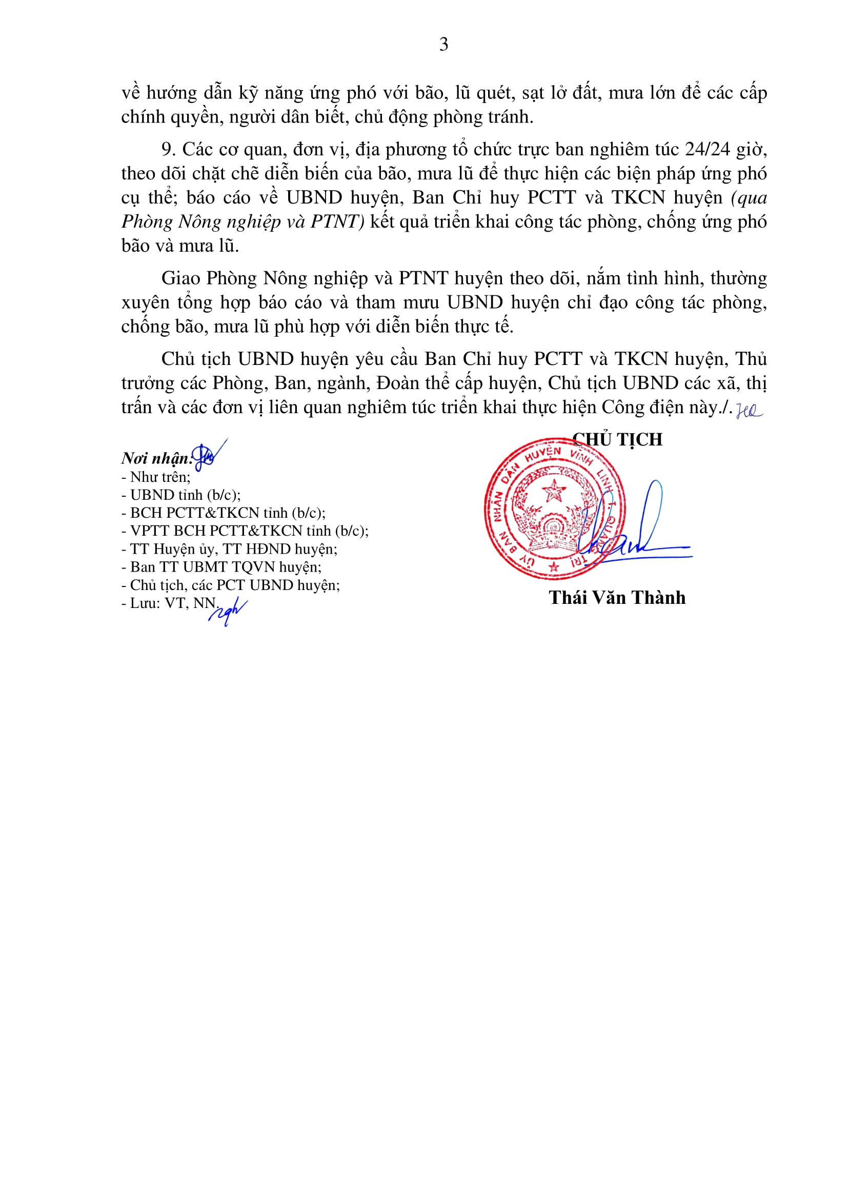 Công điện của Chủ tịch UBND huyện Vĩnh Linh về chủ động ứng phó bão số 6 và mưa lũ