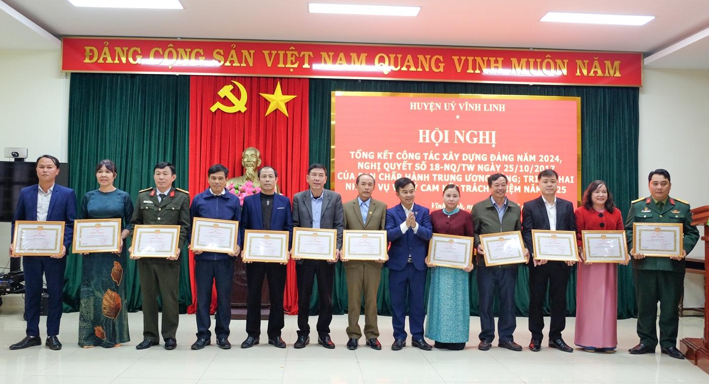 Huyện ủy Vĩnh Linh khen thưởng cho những tập thể, cá nhân có thành tích xuất sắc trong công tác xây dựng Đảng năm 2024.