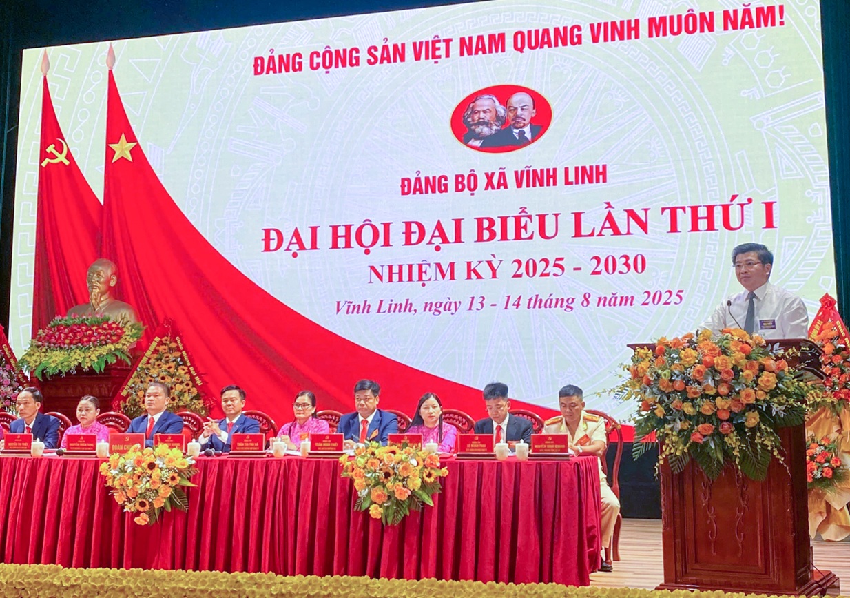 Ngày 14/8/2025, Đại hội Đại biểu Đảng bộ xã Vĩnh Linh lần thứ I, nhiệm kỳ 2025 - 2030 chính thức khai mạc. Đến dự có đồng chí Trần Vũ Khiêm, UVTV, Trưởng Ban Tổ chức Tỉnh ủy Quảng Trị; đại diện lãnh đạo các sở, ban, ngành liên quan và 234 đại biểu đại diện cho 3.080 đảng viên trong toàn đảng bộ xã.