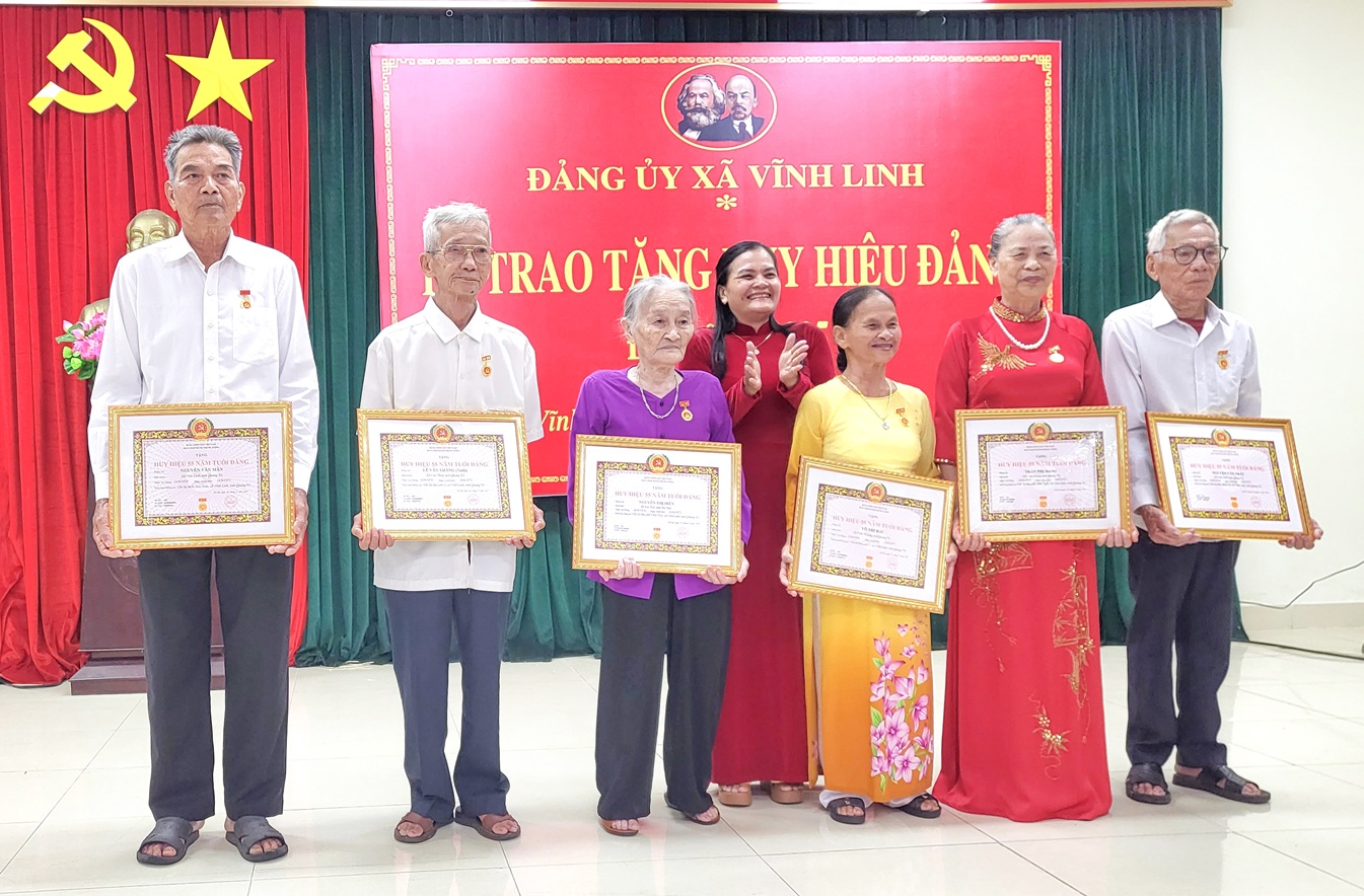 Chiều 29/8, Đảng ủy xã Vĩnh Linh tổ chức Lễ trao tặng Huy hiệu Đảng đợt 02/9 cho 43 đảng viên từ 30 đến 70 năm tuổi Đảng.
