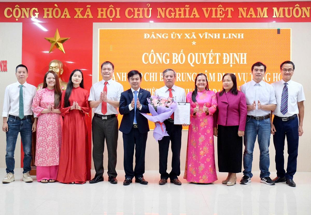 Cũng trong khuôn khổ buổi lễ, Đảng ủy xã Vĩnh Linh đã công bố Quyết định về việc thành lập Chi bộ cơ sở Trung tâm Dịch vụ tổng hợp xã. Đồng chí Hoàng Đức An, Giám đốc Trung tâm Dịch vụ tổng hợp xã được chỉ định giữ chức Bí Thư Chi bộ cơ sở Trung tâm Dịch vụ tổng hợp xã Vĩnh Linh.