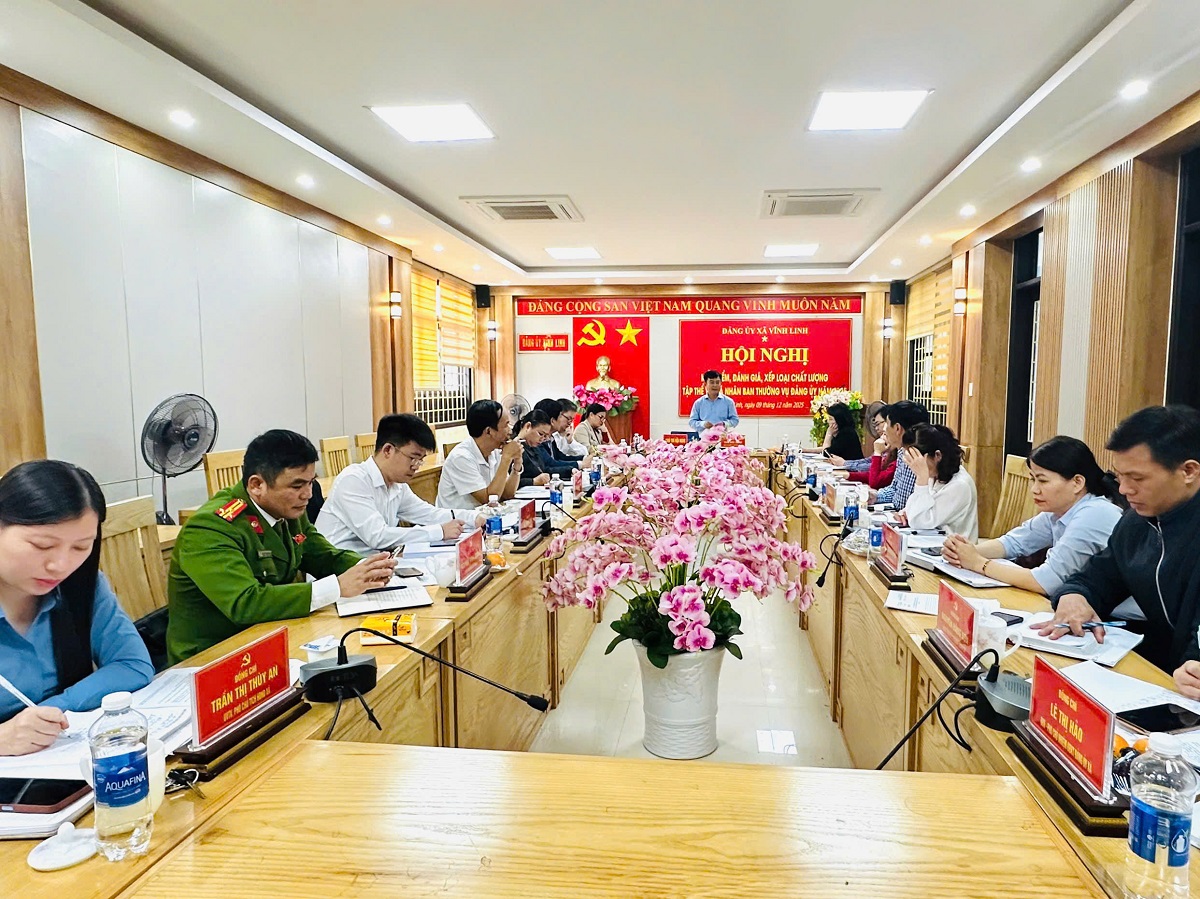 Ngày 09/12/2025, Ban Thường vụ (BTV) Đảng ủy xã Vĩnh Linh tổ chức hội nghị kiểm điểm tập thể và cá nhân các đồng chí trong BTV năm 2025. Tham dự có các đồng chí: Nguyễn Thị Hoài Thương, Phó Trưởng ban Ban Tổ chức Tỉnh ủy; Hoàng Quốc Long - Uỷ viên UBKT Tỉnh uỷ. Đồng chí Trần Nhật Quang, TUV, Bí thư Đảng ủy, Chủ tịch HĐND xã chủ trì hội nghị.