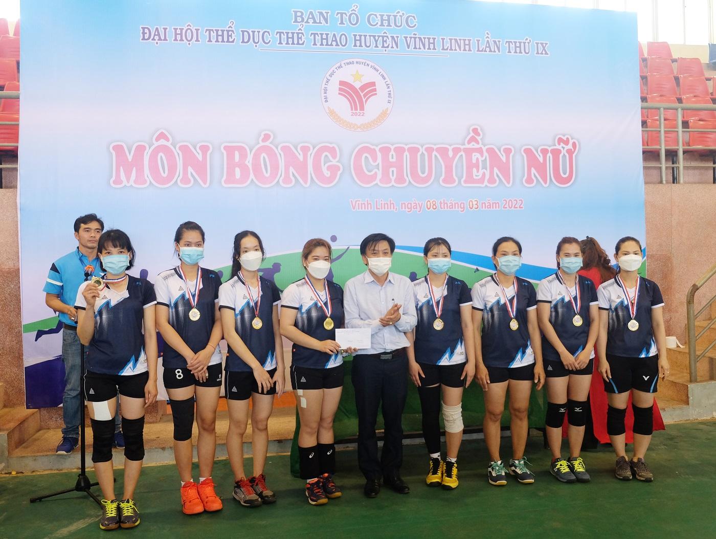 Sau 4 ngày thi đấu sôi nổi, ngày 11/3/2022, huyện Vĩnh Linh đã tổ chức bế mạc giải Giải Bóng chuyền nữ trong khuôn khổ Đại hội TDTT huyện lần thứ 9 năm 2021- 2022. Đến dự có Phó Giám đốc Sở Văn hóa, Thể thao và Du lịch Hồ Văn Hoan, Phó Chủ tịch UBND huyện Vĩnh Linh Nguyễn Thiên Tùng.