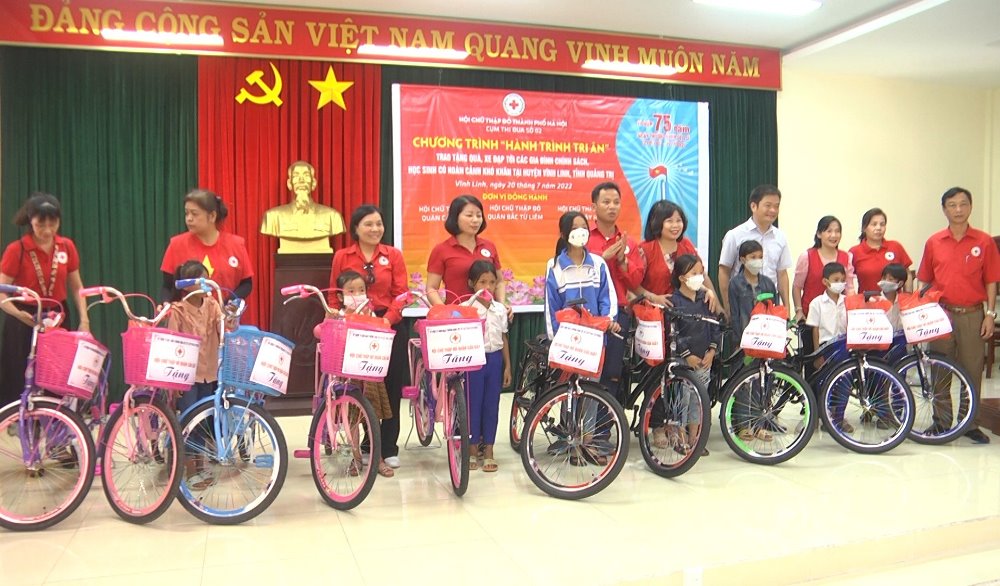 Nhân kỷ niệm 75 năm Ngày Thương binh, Liệt sĩ 27/7 (1947-2022), ngày 20/7/2022, Hội CTĐ các quận Bắc Từ Liên, Cầu Giấy và Tây Hồ thuộc Hội CTĐ Thành phố Hà Nội đã phối hợp với Hội CTĐ huyện Vĩnh Linh trao tặng 45 suất quà cho các gia đình chính sách và học sinh có hoàn cảnh khó khăn trên địa bàn huyện.