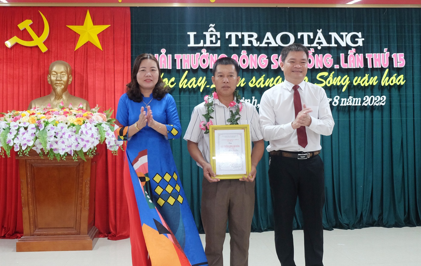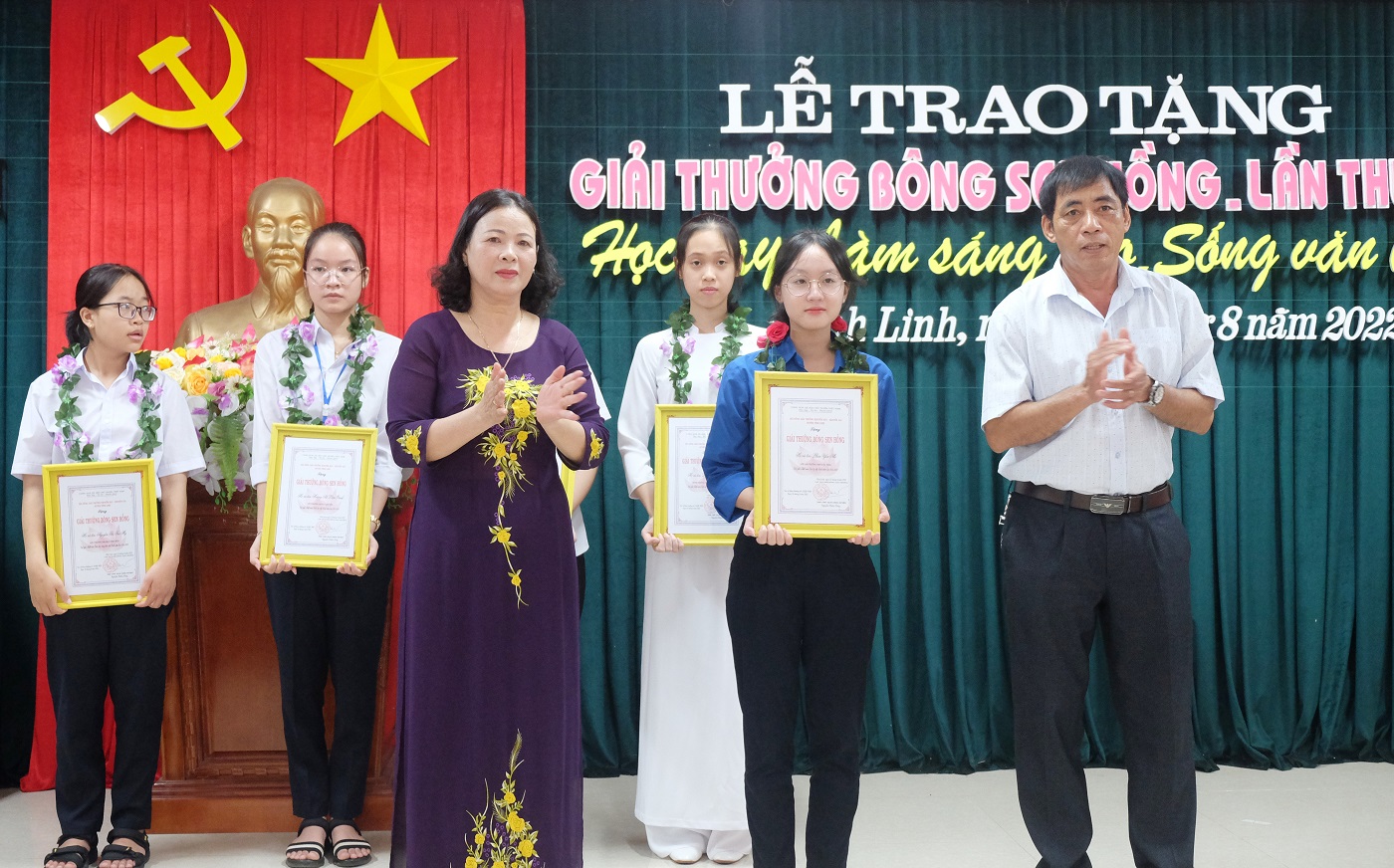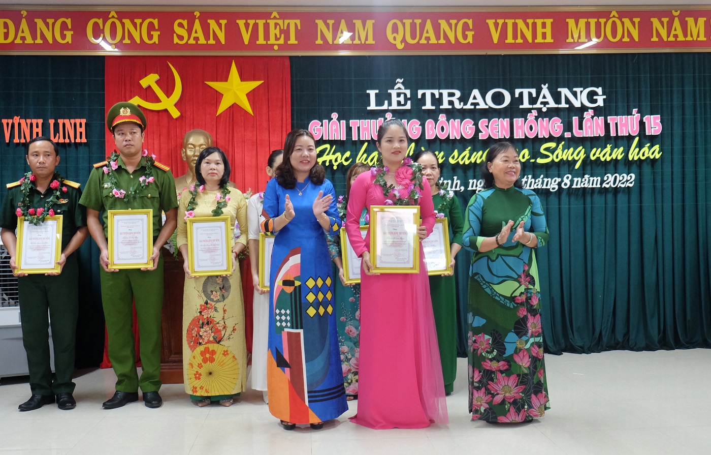 Ngày 25/8/2022, huyện Vĩnh Linh đã tổ chức trao Giải thưởng “Bông sen hồng” lần thứ 15 cho các cá nhân có thành tích tiêu biểu trong phong trào “Học hay, làm sáng tạo, sống văn hóa”. Tham dự có các đồng chí Nguyễn Thị Hồng Vân - Chủ tịch Hội Khuyến học tỉnh; Nguyễn Thị Hương- Phó Bí thư Thường trực Huyện ủy, Chủ tịch HĐND huyện; Nguyễn Thiên Tùng- Phó Chủ tịch UBND huyện.
