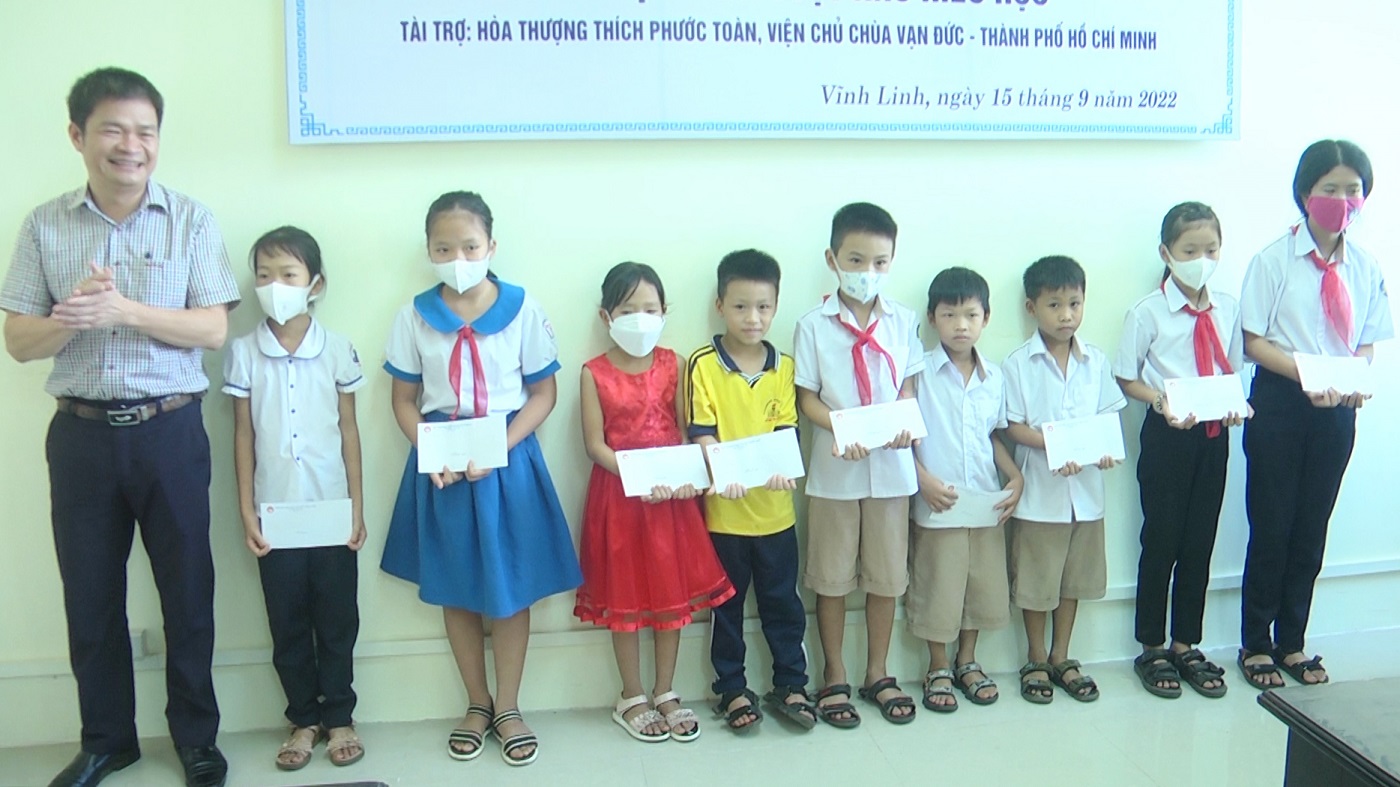 Cũng tại chương trình, Hội khuyến học huyện Vĩnh Linh đã trao 45 suất quà, mối suất trị giá 300 ngàn đồng cho các em học sinh có hoàn cảnh khó khăn.