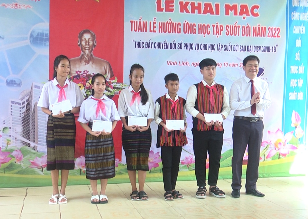 Ngày 1/10/2022, huyện Vĩnh Linh đã tổ chức khai mạc Tuần lễ học tập suốt đời năm 2022 với chủ đề “Thúc đẩy chuyển đổi số phục vụ cho học tập suốt đời sau đại dịch Covid-19” diễn ra từ ngày 1- 7/10/2022. Đến dự có Chủ tịch Hội Khuyến học tỉnh Quảng Trị Nguyễn Thị Hồng Vân, Phó Chủ tịch UBND huyện Vĩnh Linh Nguyễn Thiên Tùng.