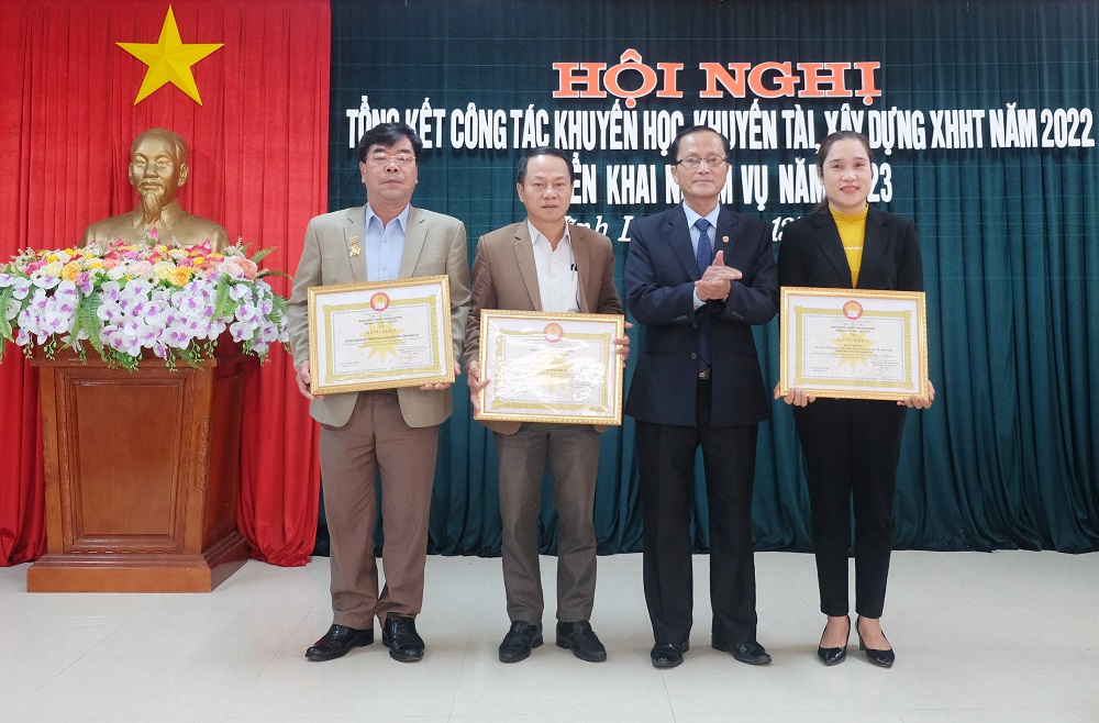 Công tác xây dựng Quỹ Khuyến học các cấp được quan tâm, kịp thời trao thưởng, động viên tập thể, cá nhân tiêu biểu trong phong trào khuyến học, khuyến tài. Trong năm, toàn huyện đã vận động và nhận từ các nguồn hỗ trợ được trên 5,65 tỷ đồng để trao học bổng, hỗ trợ cho trên 9.280 đối tượng.