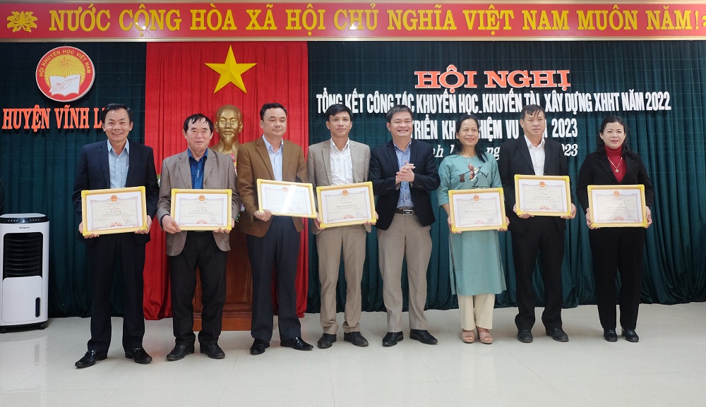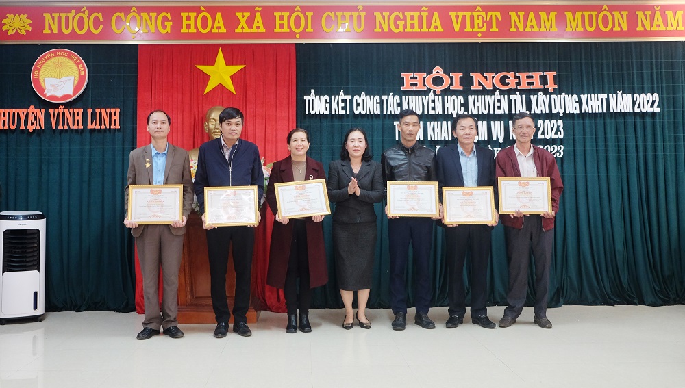 Tại hội nghị, 5 cá nhân của huyện Vĩnh Linh nhận Kỷ niệm chương Vì sự nghiệp khuyến học của Trung ương Hội Khuyến học Việt Nam; 2 tập thể, 2 cá nhân nhận Bằng khen của Trung ương Hội Khuyến học Việt Nam; 1 tập thể, 2 cá nhân nhận Bằng khen của UBND tỉnh; 2 tập thể, 3 cá nhân nhận Giấy khen của Hội Khuyến học tỉnh; 5 tập thể, 5 cá nhân nhận Giấy khen của UBND huyện và 7 tập thể, 7 cá nhân nhận Giấy khen của Hội Khuyến học huyện vì có thành tích xuất sắc trong phong trào khuyến học, khuyến tài, xây dựng xã hội học tập trong thời gian qua.