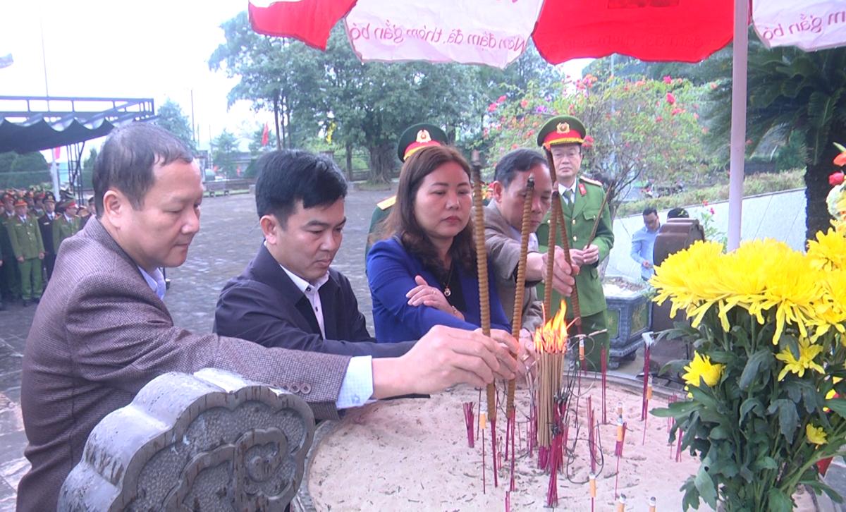 Trong không khí trang nghiêm, thành kính, đoàn đã dành phút tưởng niệm bày tỏ lòng tri ân sâu sắc đối với sự hi sinh anh dũng của các anh hùng liệt sĩ. Sau phút tưởng niệm, lãnh đạo huyện và các ban, ngành, đoàn thể cùng thắp hương lên từng phần mộ của các anh hùng liệt sĩ.