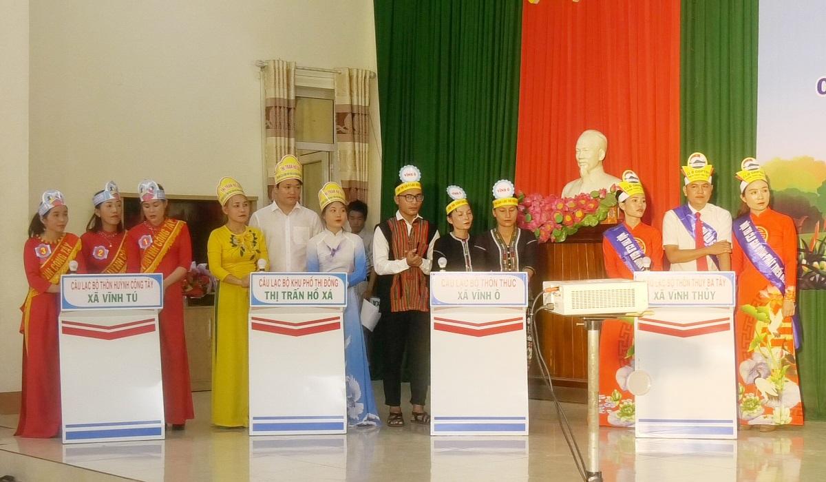 Tham gia có 7 đội thi, đến từ các thôn, bản và khóm phố trên địa bàn huyện. Các đội cùng nhau tranh tài qua 3 phần thi: chào hỏi, kiến thức, năng khiếu.