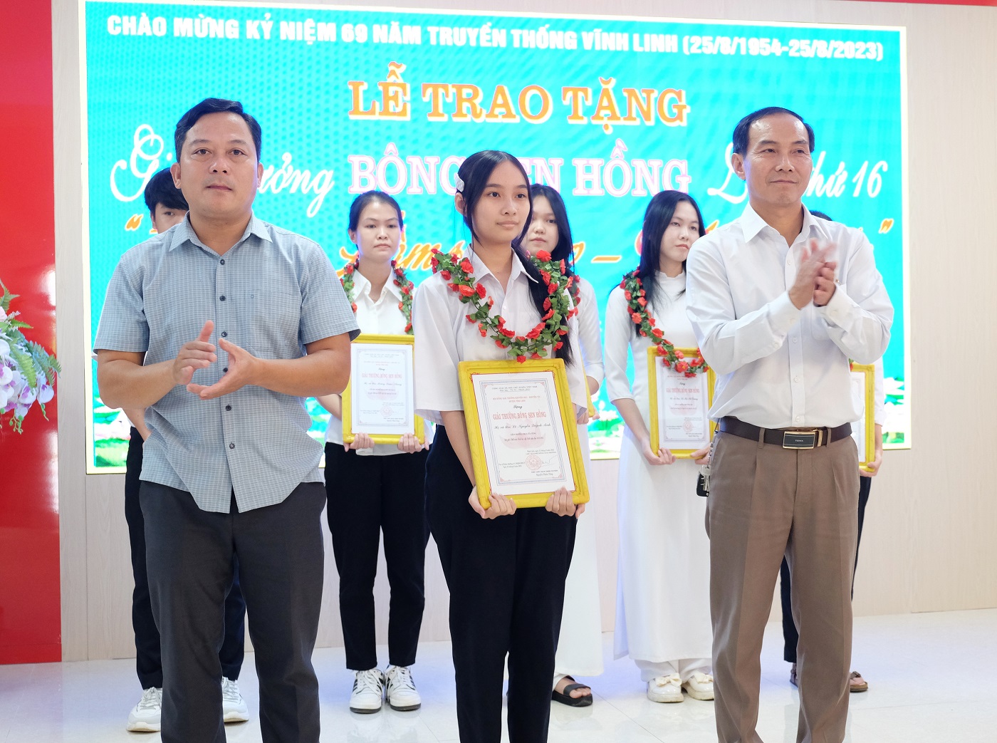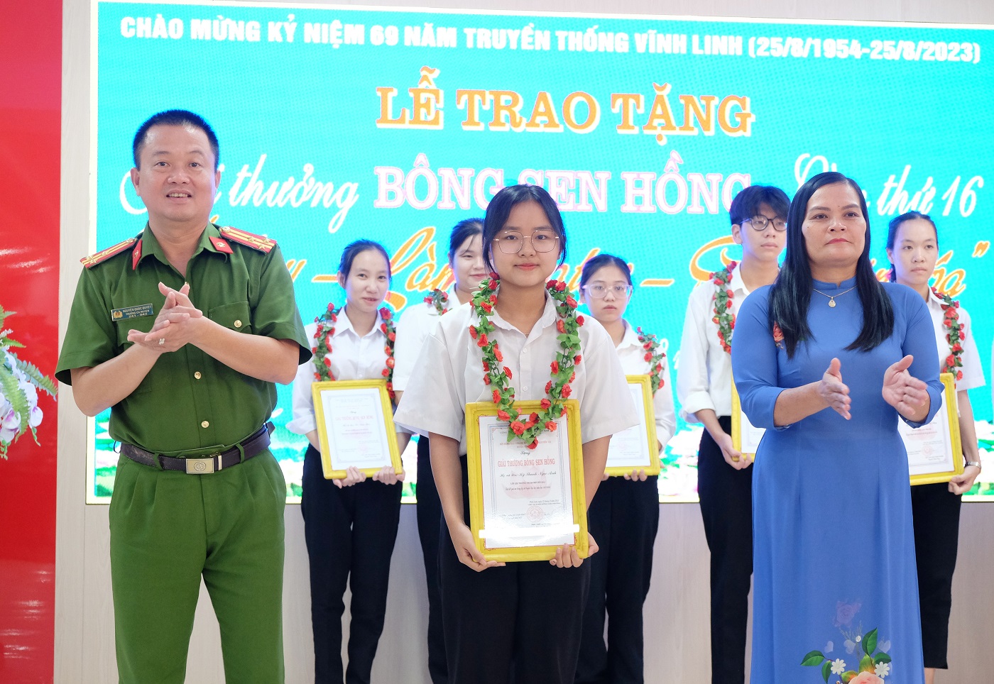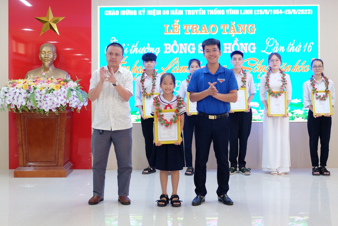 Nhân kỷ niệm 78 năm Cách mạng tháng Tám, Quốc khánh 2/9, kỷ niệm 69 năm ngày truyền thống Vĩnh Linh, ngày 25/8/2023, huyện Vĩnh Linh đã tổ chức Lễ trao giải thưởng Bông Sen Hồng lần thứ 16 cho các cá nhân có thành tích tiêu biểu trong phong trào “Học hay- Làm sáng tạo- Sống văn hóa”. Đến dự có các đồng chí: Trần Nhật Quang- Bí thư Huyện ủy, Nguyễn Thị Hương- Phó Bí thư Thường trực Huyện ủy, Chủ tịch HĐND huyện, Vũ Văn Phong- Chủ tịch UBMT huyện, Nguyễn Thiên Tùng- Phó Chủ tịch UBND huyện.