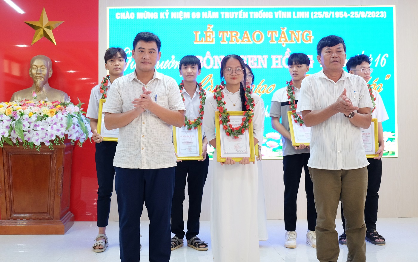 Tại buổi lễ, huyện Vĩnh Linh đã vinh danh, khen thưởng cho 61 cá nhân tiêu biểu. Trong đó, có 44 học sinh, sinh viên; 5 giáo viên; 5 cán bộ, công chức, viên chức và 7 cá nhân là người lao động trực tiếp.