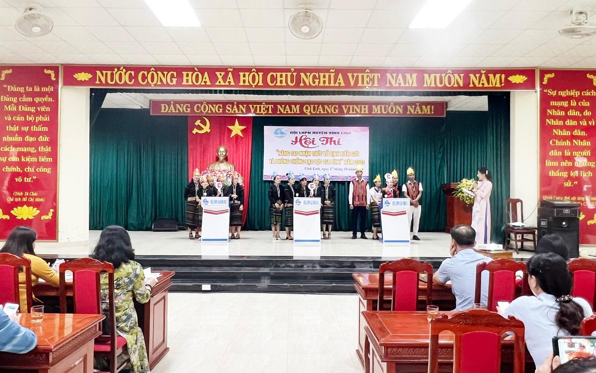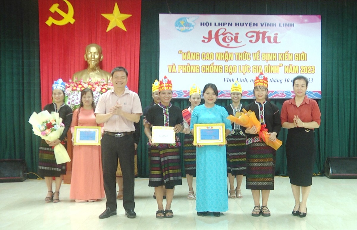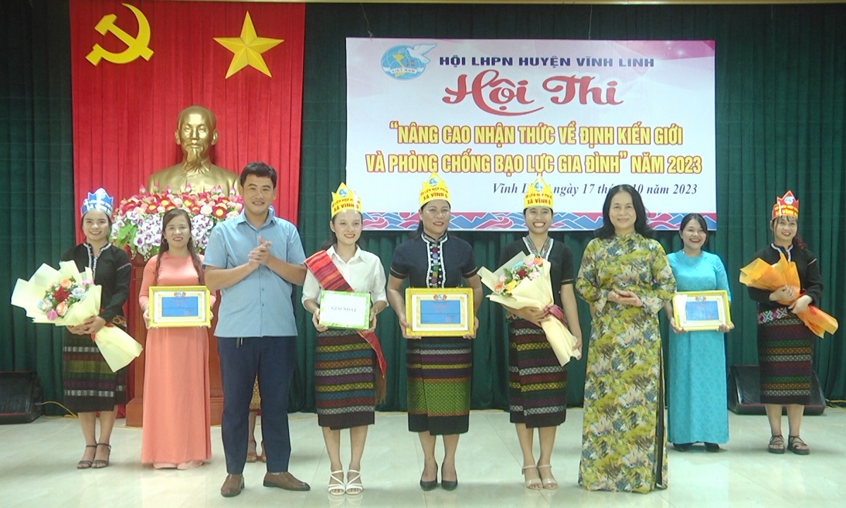 Ngày 17/10/2023, Hội LHPN huyện Vĩnh Linh tổ chức hội thi “Nâng cao nhận thức về định kiến giới và phòng chống bạo lực gia đình” năm 2023. Đây là một hoạt động nằm trong chuỗi các hoạt động hướng tới chào mừng 93 năm Ngày thành lập Hội LHPN Việt Nam 20/10 (1930- 2023). Tham dự có các đồng chí: Nguyễn Thị Quế Phượng- Phó Chủ tịch Hội LHPN tỉnh, Nguyễn Thị Hương- Phó Bí thư Thường trực Huyện ủy, Chủ tịch HĐND huyện, Phan Ngọc Khoa- Trưởng Ban Dân vận Huyện ủy, Nguyễn Thiên Tùng- Phó Chủ tịch UBND huyện.