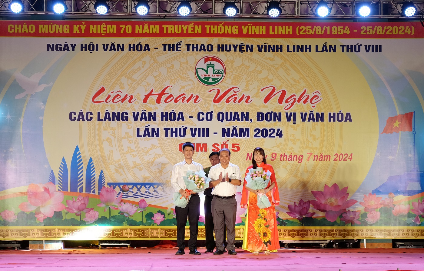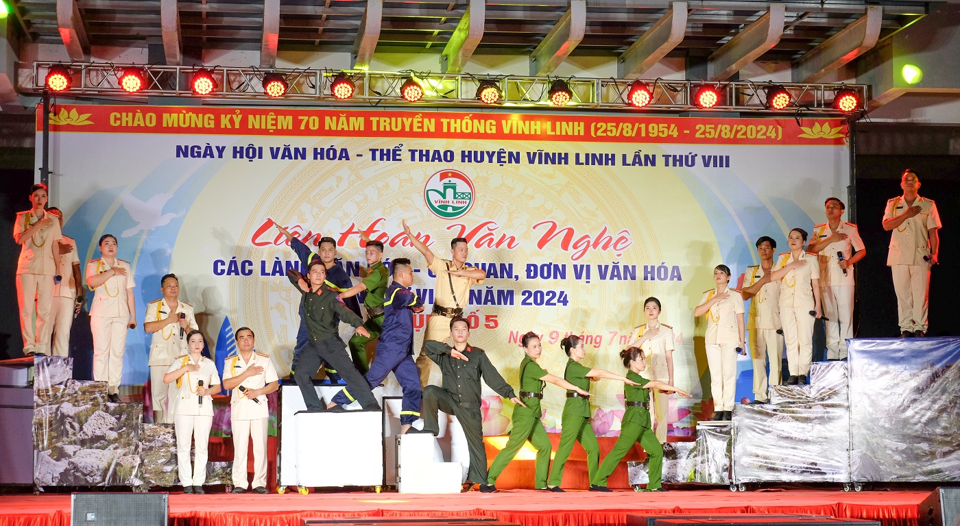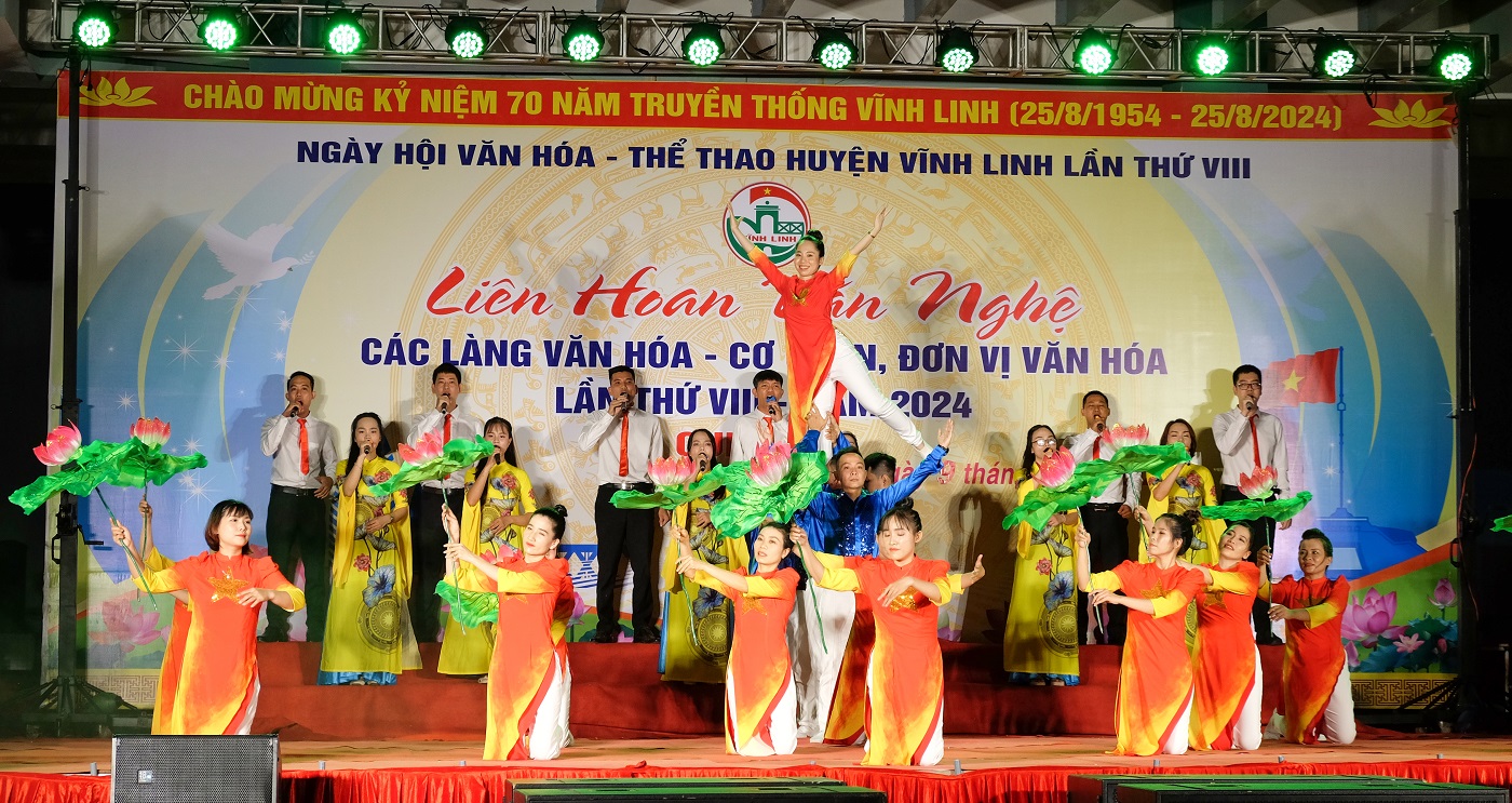 Vào tối ngày 09/7/2024, tại Nhà Thi đấu và Luyện tập TDTT huyện Vĩnh Linh đã diễn ra Liên hoan Văn nghệ các làng văn hóa- cơ quan, đơn vị văn hóa Cụm số 5, gồm các ban ngành, đoàn thể cấp huyện; các cơ quan tỉnh, Trung ương, doanh nghiệp đóng trên địa bàn.