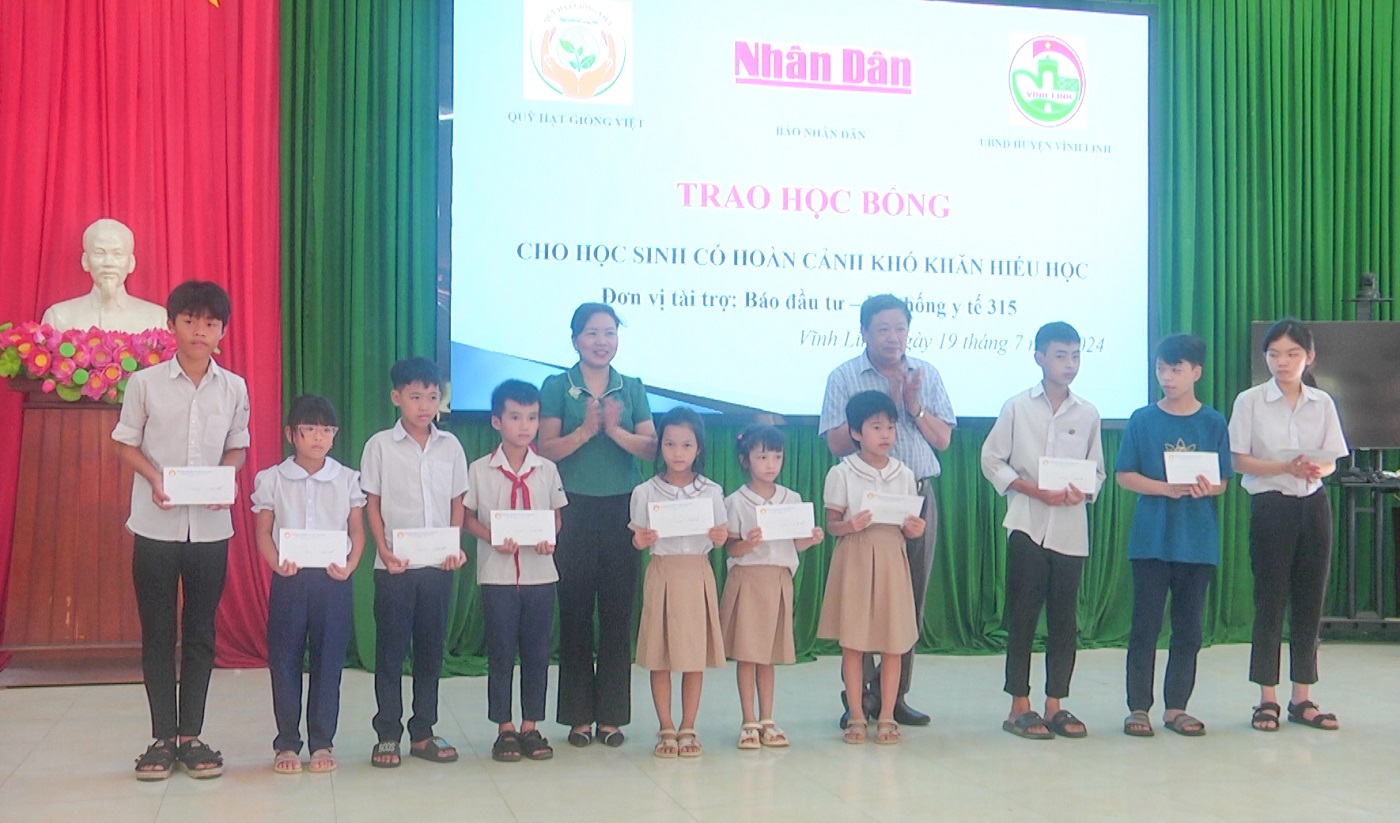 Tại chương trình 110 suất học bổng, trị giá 1 triệu đồng mỗi suất và 20 xe đạp, trị giá gần 2,5 triệu đồng mỗi chiếc đã được trao đến học sinh thuộc diện hoàn cảnh đặc biệt khó khăn tại 18 xã, thị trấn huyện Vĩnh Linh.