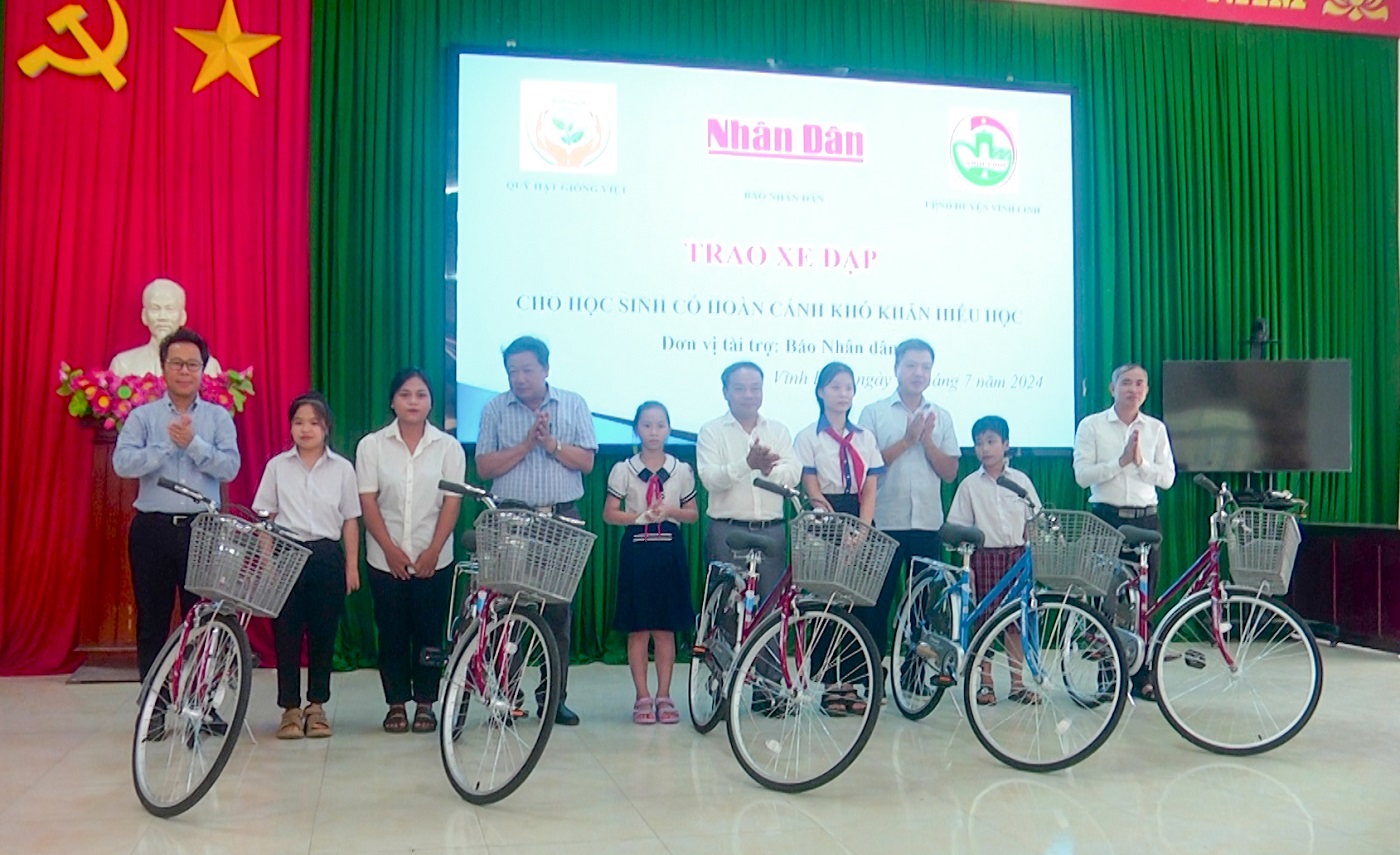 Ngày 19/7/2024, UBND huyện Vĩnh Linh phối hợp với Quỹ Hạt giống Việt, Báo Nhân Dân tổ chức chương trình trao học bổng và xe đạp cho học sinh hoàn cảnh đặc biệt khó khăn hiếu học trên địa bàn.