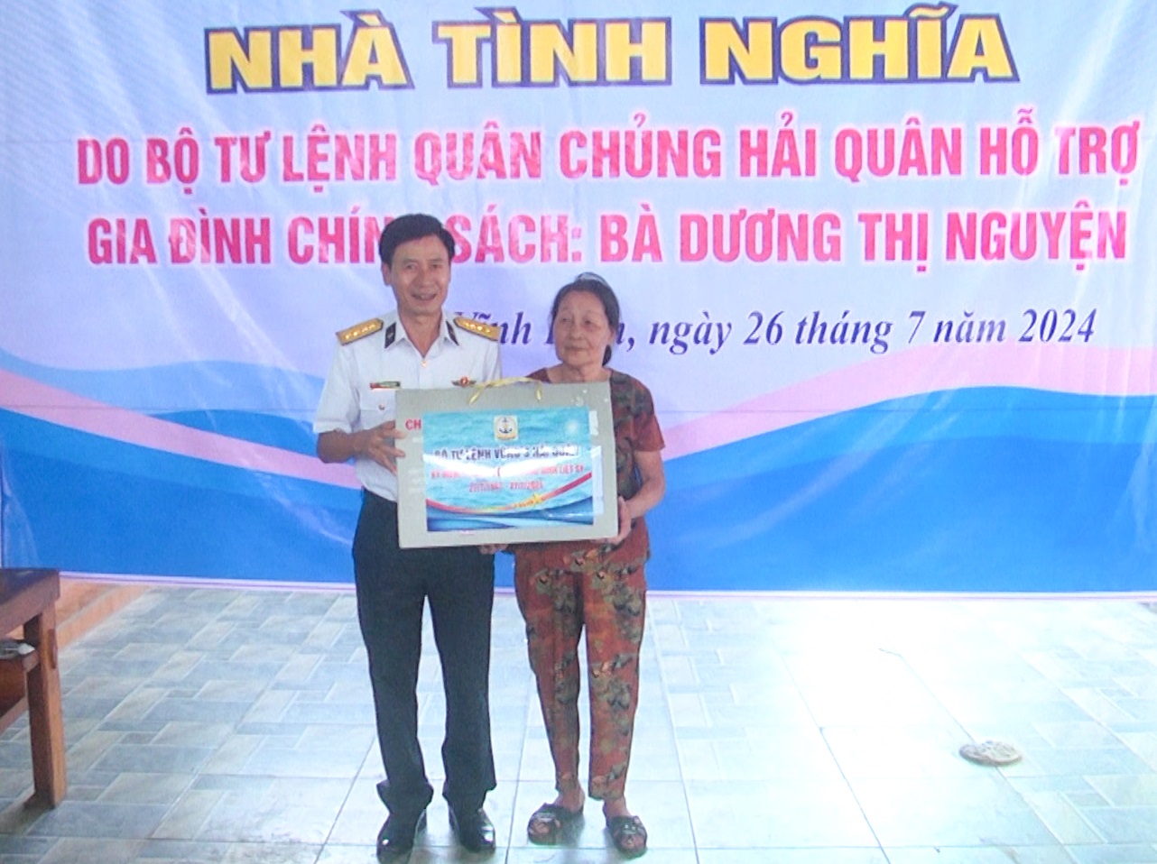 Tại lễ bàn giao, Bộ Tư lệnh vùng 3 Hải Quân đã tặng một số vật dụng cần thiết cho bà Dương Thị Nguyện chuẩn bị bước vào ngôi nhà mới.