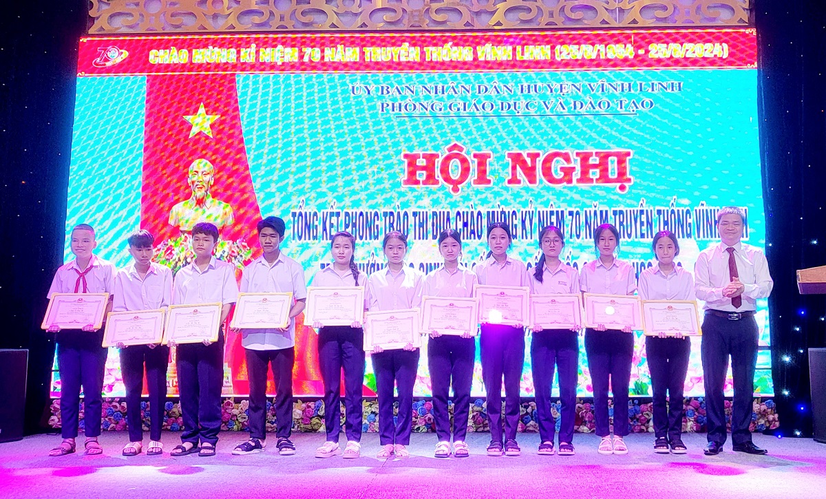Dịp này, UBND huyện, Hội Khuyến học huyện Vĩnh Linh tuyên dương, khen thưởng cho học sinh đạt giải cấp tỉnh, cấp quốc gia năm học 2023 - 2024; biểu dương cho nhiều tập thể và cá nhân đạt thành tích xuất sắc trong phong trào thi đua chào mừng kỷ niệm 70 năm truyền thống Vĩnh Linh.