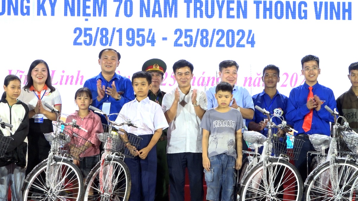 Trước thềm năm học mới, Huyện đoàn Vĩnh Linh trao tặng 40 chiếc xe đạp, Hội cựu cán bộ Đoàn tặng 40 suất học bổng cho học sinh có hoàn cảnh khó khăn. UBMTTQVN huyện hỗ trợ 3 gói phát triển kinh tế cho đoàn viên, Hội CCB huyện trao 18 suất quà cho hội viên khó khăn.