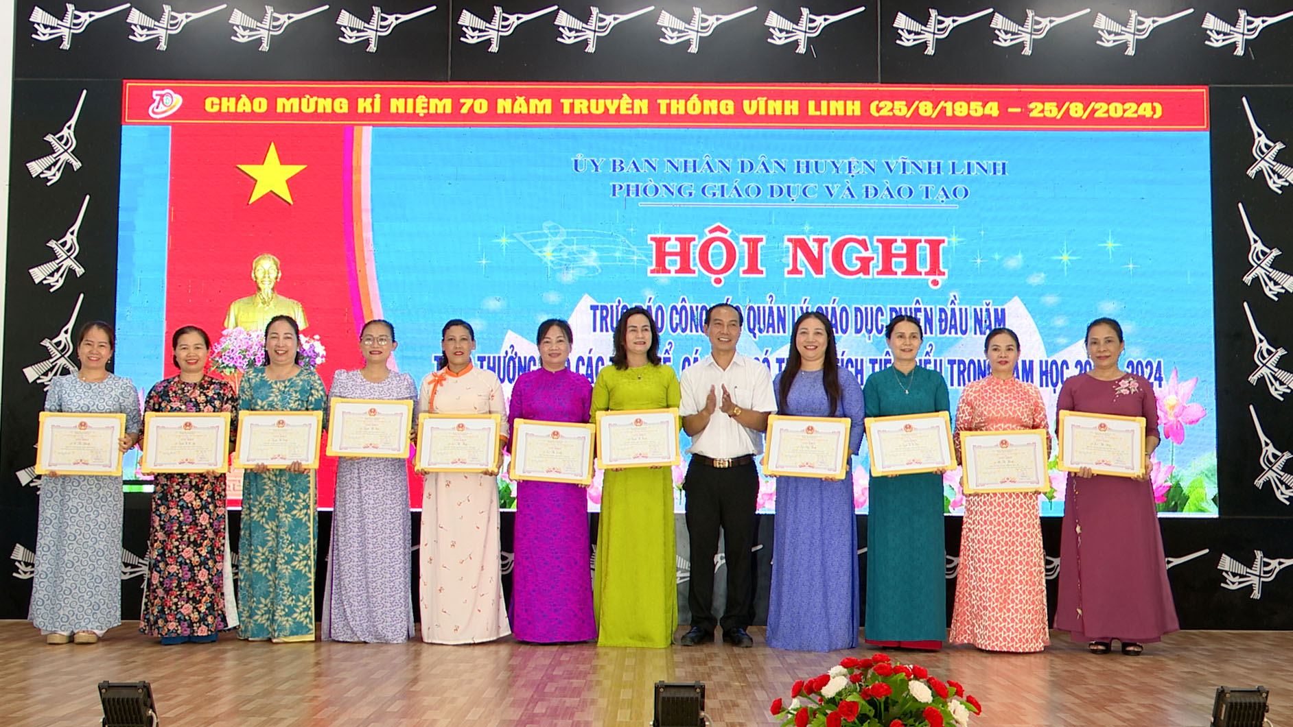 Nhân dịp này, nhiều tập thể và cá nhân ngành GD&ĐT huyện Vĩnh Linh được UBND tỉnh, UBND huyện khen thưởng vì có thành tích trong năm học qua.