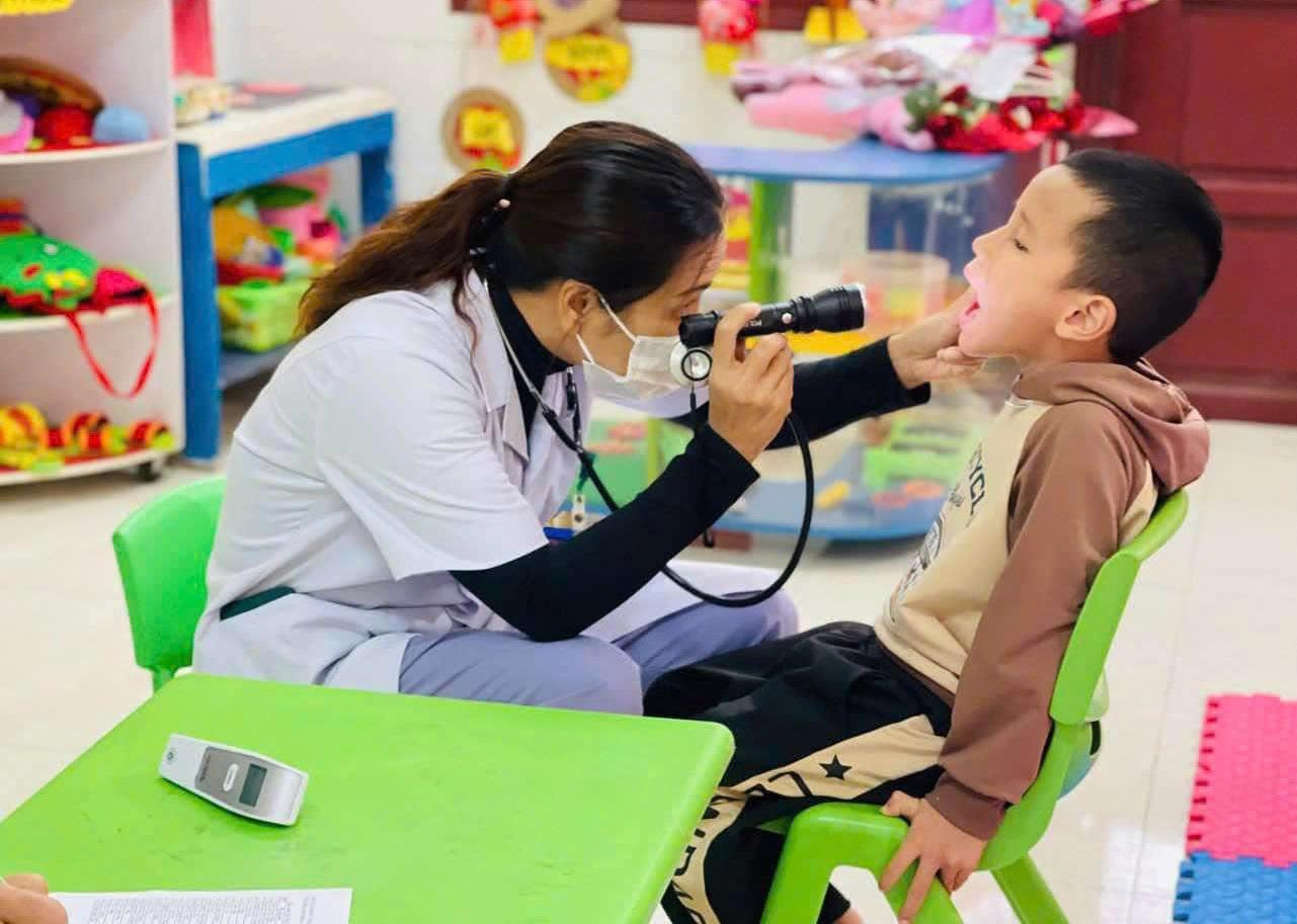 Trường Mầm non Sơn Ca, thị trấn trấn Hồ Xá phối hợp với Bệnh viện Đa khoa khu vực Vĩnh Linh khám sức khỏe tổng quát cho toàn bộ cho trẻ.