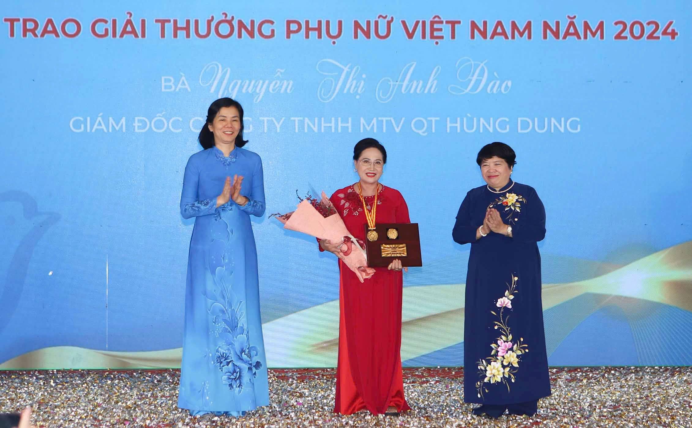 Chị Nguyễn Thị Anh Đào, Giám đốc Công ty TNHH MTV QT Hùng Dung nhận Giải thưởng Phụ nữ Việt Nam - Ảnh: T.T