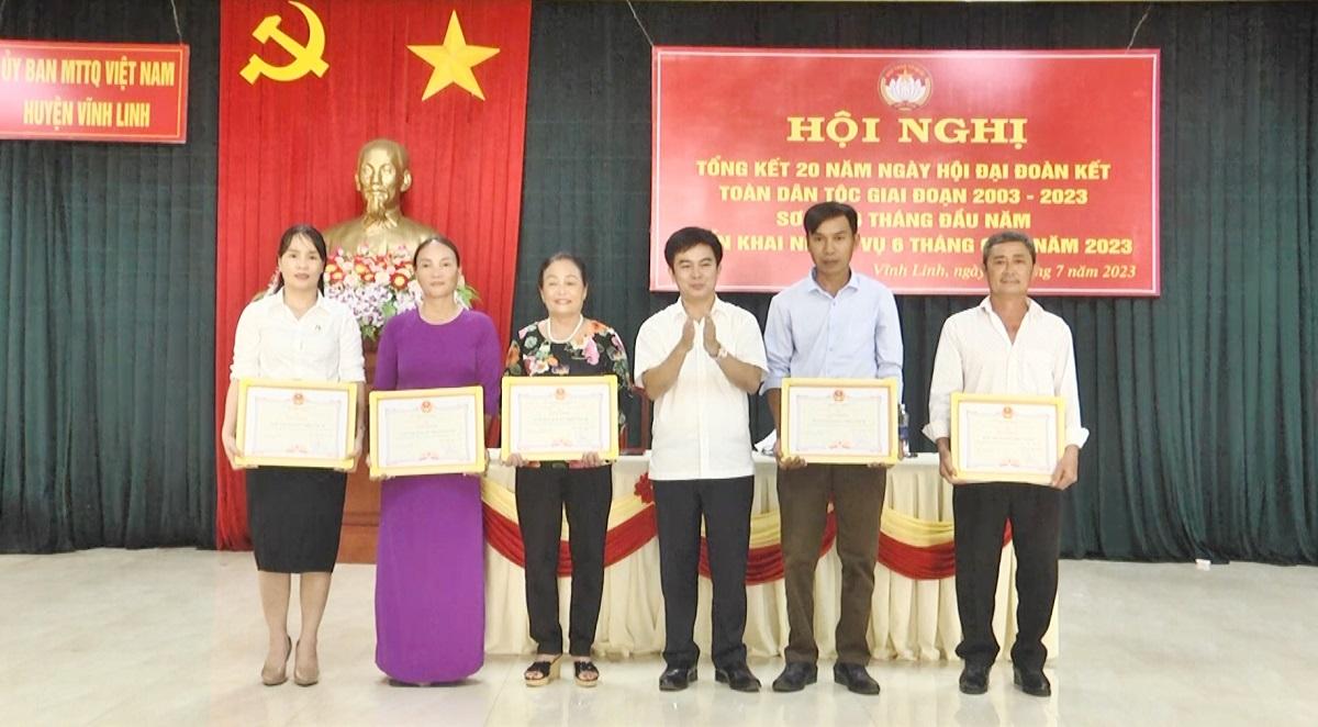 Ngày 16/10/2024, UBMT huyện Vĩnh Linh ban hành Kế hoạch tổ chức Ngày hội Đại đoàn kết toàn dân tộc năm 2024 theo tinh thần: “Gắn bó Quân- Dân; hoạt động vì người nghèo và hỗ trợ xóa nhà tạm bợ, dột nát; xây dựng khu dân cư “Đoàn kết, dân chủ, ấm no, an toàn, hạnh phúc".