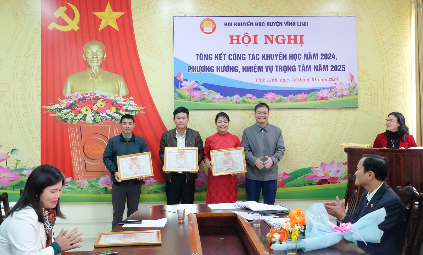Năm 2024, Hội Khuyến học huyện Vĩnh Linh đã tập trung triển khai các nhiệm vụ trọng tâm, trọng điểm trong công tác khuyến học - khuyến tài, xây dựng xã hội học tập. Đến nay toàn huyện có: 23.998 “Gia đình học tập”; 245 “Dòng họ học tập”; 165 “Cộng đồng học tập” và 68 “Đơn vị học tập”. Các trung tâm học tập cộng đồng xã, thị trấn mở 112 lớp tuyên truyền, 258 lớp học ngắn hạn và tập huấn chuyên môn, thu hút 16.735 lượt học viên trong cộng đồng dân cư tham gia. Hội khuyến học các cấp đã vận động nguồn quỹ khuyến học trên 3,587 tỉ đồng, kịp thời trao hỗ trợ thông qua nhiều hình thức cho 3.085 đối tượng…