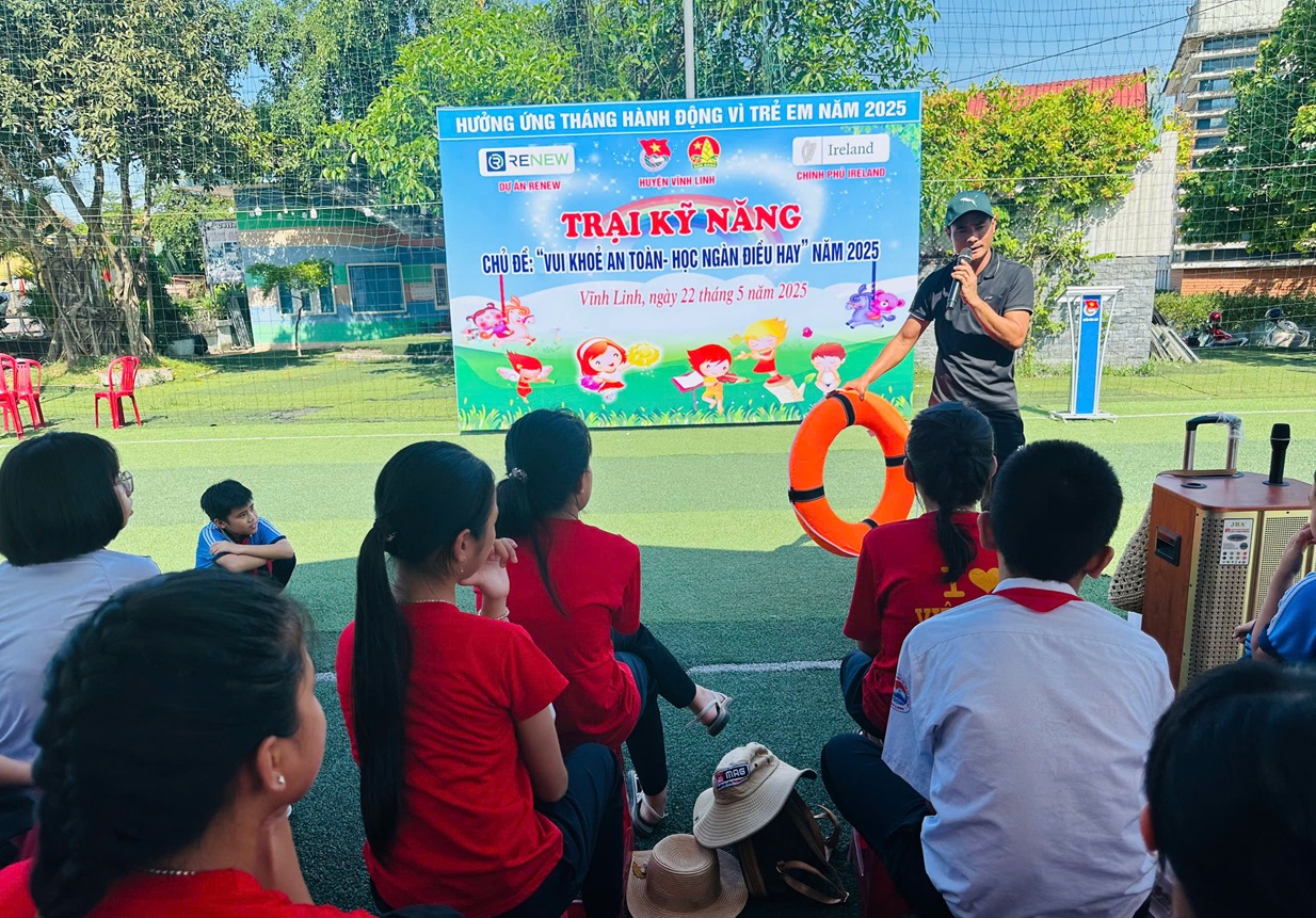Ngày 22/5/2025, Huyện đoàn Vĩnh Linh phối hợp với Dự án RENEW tỉnh Quảng Trị đã tổ chức chương trình Trại kỹ năng năm 2025 dành cho đội viên, thiếu niên nhi đồng với chủ đề “Vui khỏe an toàn- Học ngàn điều hay”.