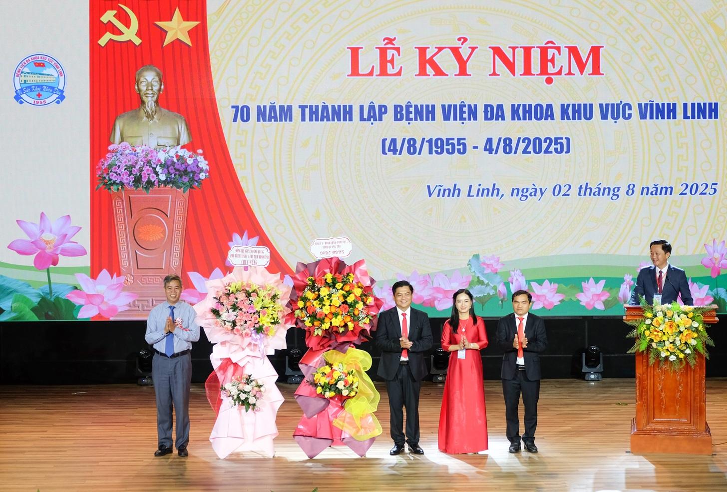 Ngày 02/8/2025, Bệnh viện ĐKKV Vĩnh Linh đã tổ chức lễ kỷ niệm 70 năm ngày thành lập (04/8/1955- 04/8/2025). Đến dự có các đồng chí: Nguyễn Đăng Quang, Phó Bí thư Tỉnh ủy, Chủ tịch HĐND tỉnh; Nguyễn Trần Huy, TUV, Phó Chủ tịch HĐND tỉnh; Diệp Thị Minh Quyết, TUV, Giám đốc Sở Y tế; Hoàng Đức Thắng, Phó trưởng đoàn, phụ trách Đoàn đại biểu Quốc hội tỉnh; đại diện lãnh đạo các Sở, ban, ngành tỉnh.