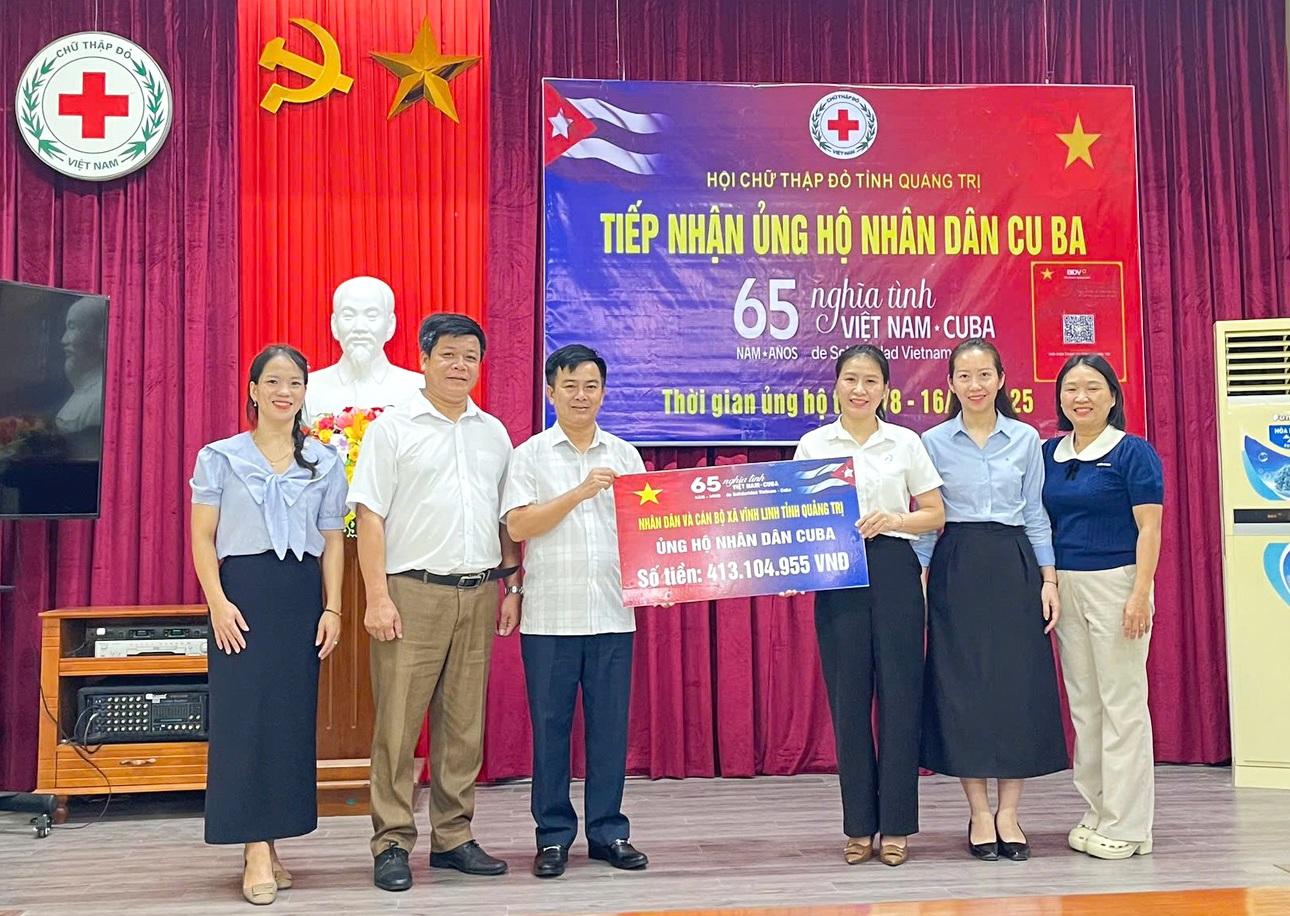 UBMT xã Vĩnh Linh giao số tiền trên 413 triệu đồng từ 46 tập thể, 6 cá nhân ủng hộ Nhân dân Cuba cho Hội CTĐ tỉnh Quảng Trị.