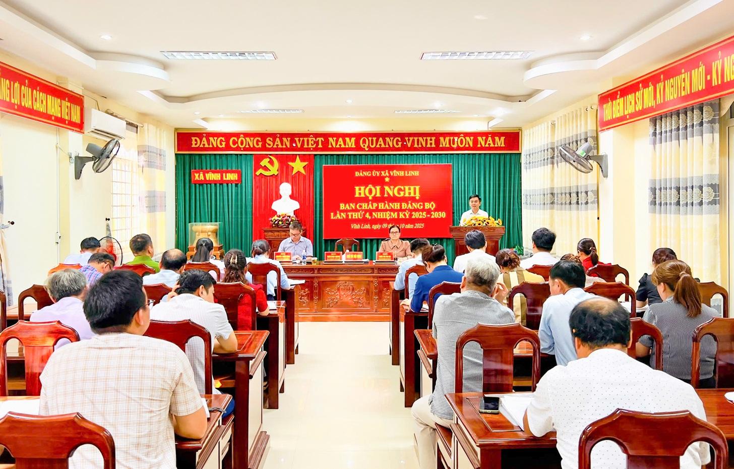 Chiều ngày 09/10/2025, Đảng ủy xã Vĩnh Linh tổ chức Hội nghị Ban Chấp hành Đảng bộ xã lần thứ IV, nhiệm kỳ 2025- 2030 nhằm đánh giá kết quả lãnh đạo, chỉ đạo thực hiện nhiệm vụ chính trị quý III và triển khai phương hướng, nhiệm vụ trọng tâm quý IV năm 2025.