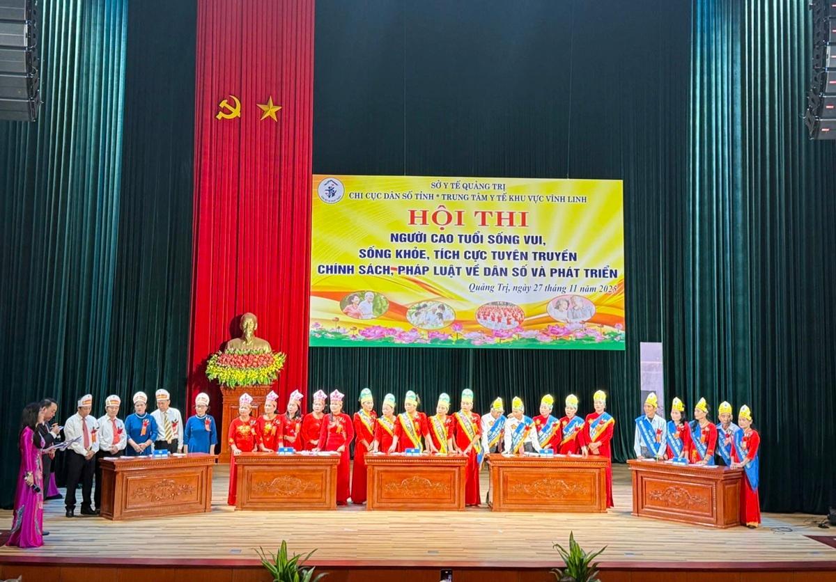 Ngày 27/11/2025, tại xã Vĩnh Linh, Chi cục Dân số tỉnh Quảng Trị phối hợp với Trung tâm Y tế Khu vực Vĩnh Linh tổ chức Hội thi “Người cao tuổi (NCT) sống vui, sống khỏe, tích cực tuyên truyền chính sách, pháp luật về Dân số và phát triển năm 2025”.