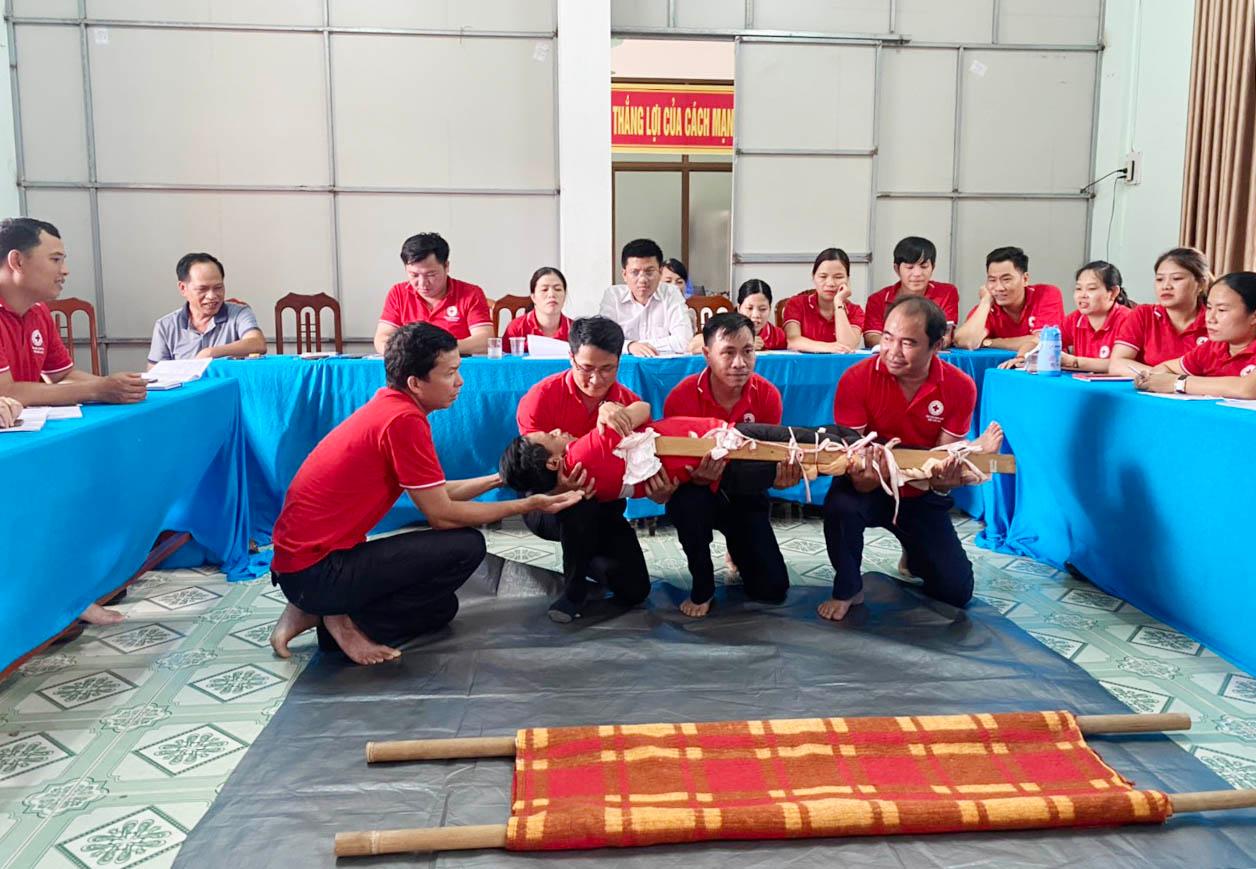 Trong thời gian 3 ngày, từ 7-9/6/2022, các học viên đã được giới thiệu khái quát về cứu hộ, cứu nạn; các kỹ năng cơ bản trong sơ cấp cứu cộng đồng, xử lý các trường hợp dị vật đường thở, chảy máu, bất tỉnh, gãy xương, vận chuyển nạn nhân an toàn… Thực hành tại chỗ các kỹ năng sơ cấp cứu cơ bản như băng bó vết thương; hồi sức tim, phổi; cố định xương gãy; làm cáng cứu thương bằng các vật liệu có sẵn khi xảy ra thiên tai. Đồng thời phổ biến các kỹ thuật chằng chống nhà cửa khi mùa bão đến.