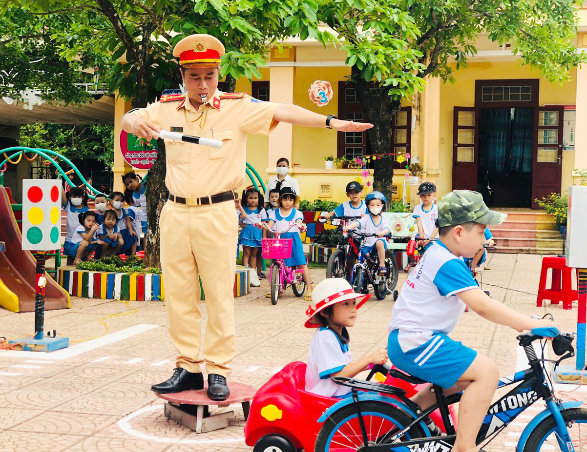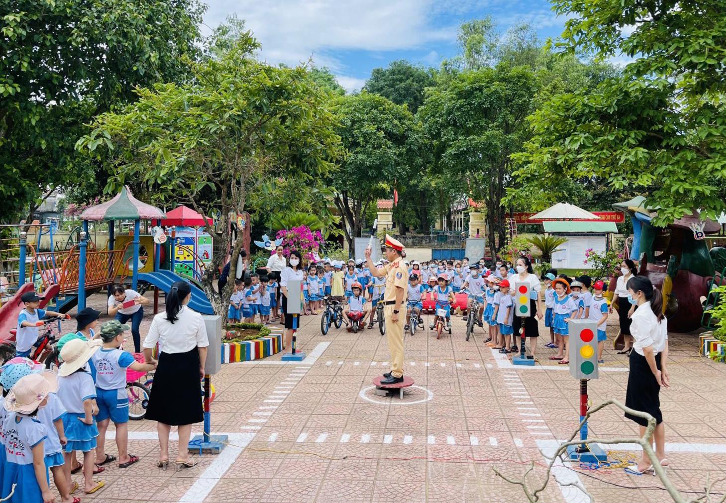Ngày 12/5/2022, trường Mầm non Sơn Ca (thị trấn Hồ Xá) phối hợp với Đội Cảnh sát giao thông- trật tự huyện Vĩnh Linh tổ chức hoạt động trãi nghiệm “Bé tìm hiểu luật giao thông”.
